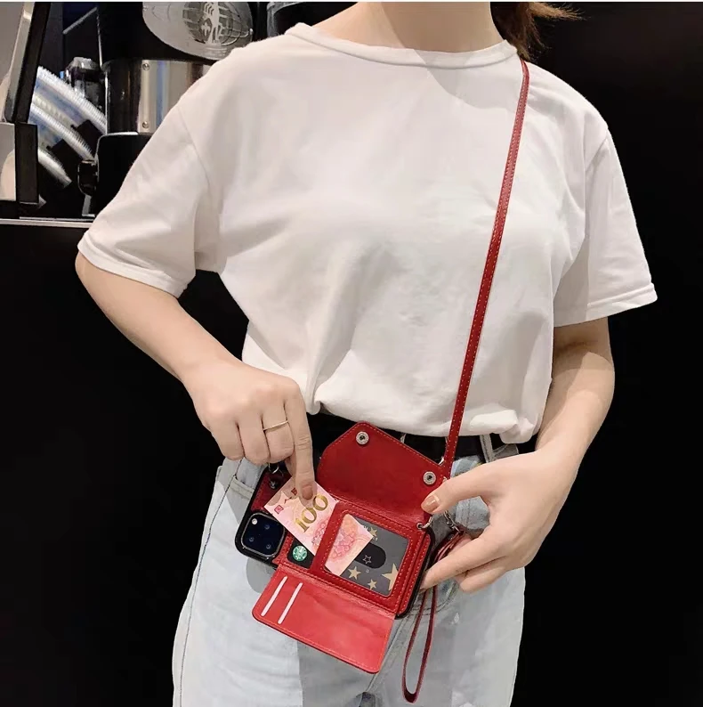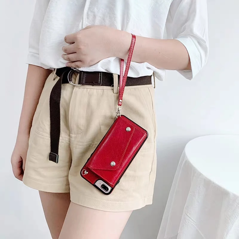 Чехол-кошелек с ремешком для iphone 13, 12 mini, 11 pro, xs max, xr, x, 7, 8 plus, роскошная кожаная наплечная сумка с ремешком для карт