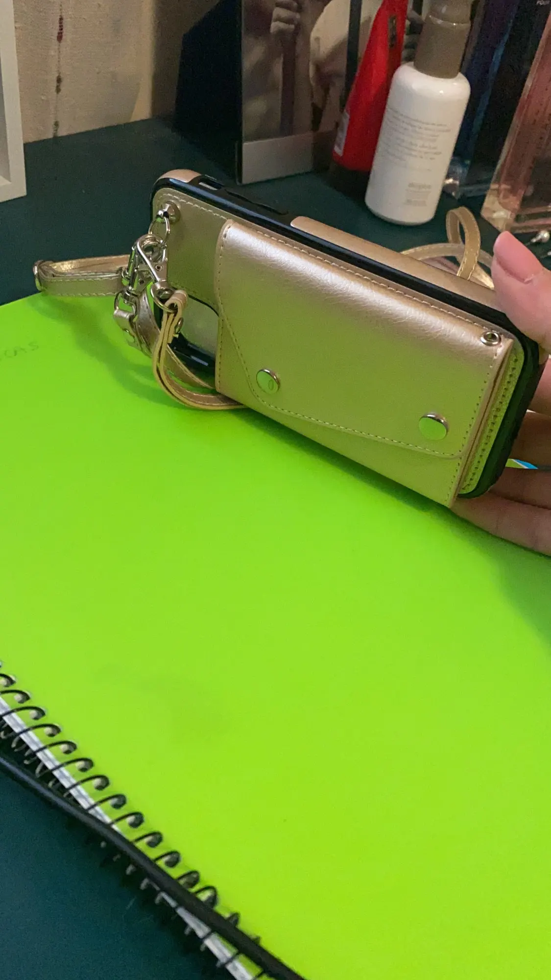 Я купил сумочку золотистого цвета и мне больше нравится цвет. Мне очень нравится, что есть ремешок на запястье и ремешок через плечо. Мне нравится, что кошелек открывается для кредитных карт и удостоверения личности. Хороший дизайн!