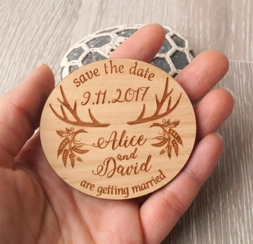 Сохраните даты, деревянные Свадебные, сохраните даты, деревянные магниты, оленьи рога, сохраните даты, деревенские, сохраните даты магниты