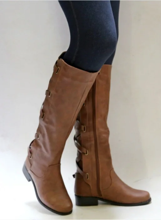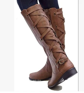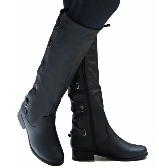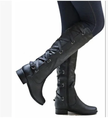 Женские сапоги до колена, с ремешком и пряжкой, с перекрестными шнурками, непромокаемые сапоги 35-43, весна обувь для женщин и девушек