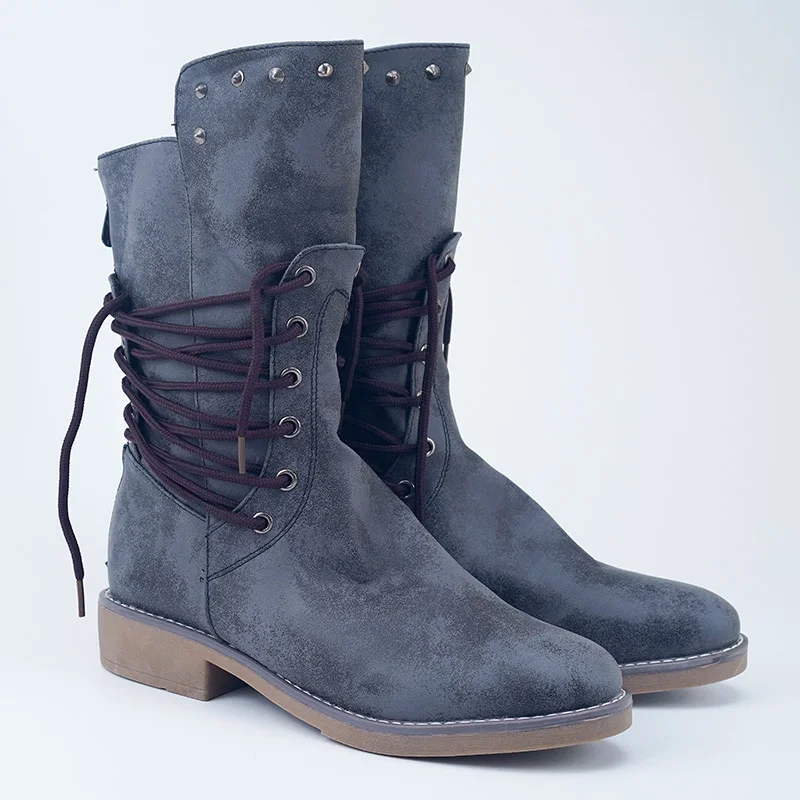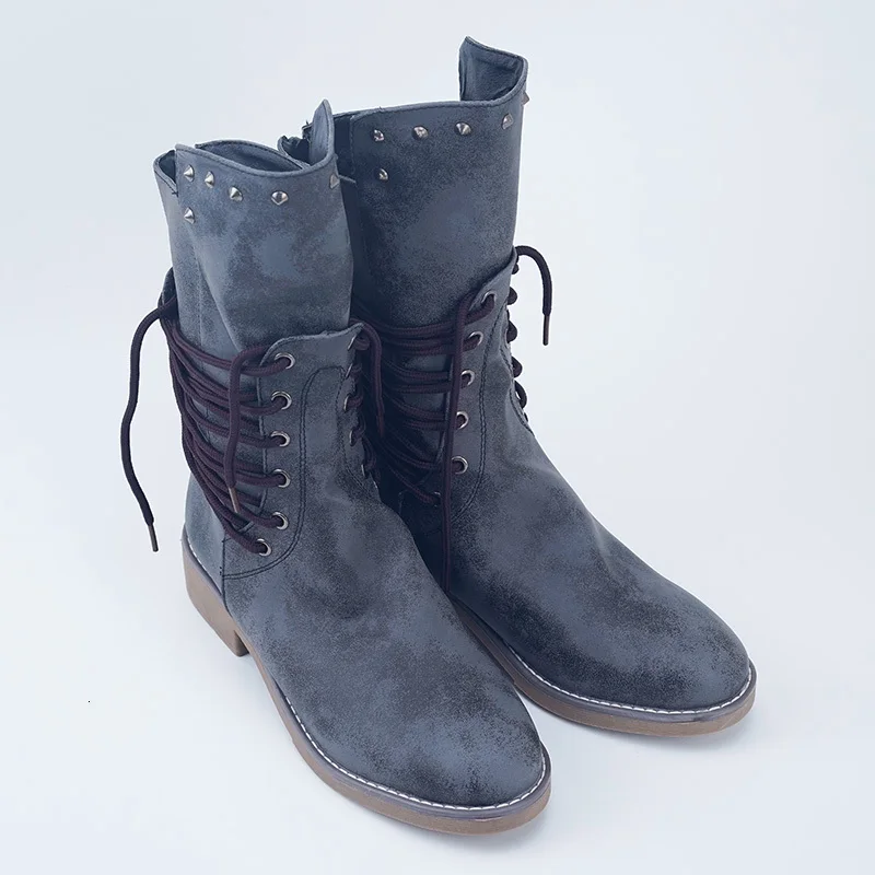 Новые осенние женские туфли в ретро-стиле; Туфли-лодочки; Женские ботинки; Ботинки для езды на мотоцикле размера плюс офисные вечерние туфли, мужские кожаные ботинки на низком каблуке; Ботинки до середины икры