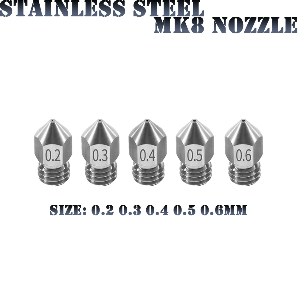 Резьбовое сопло MK8 из нержавеющей стали для 3D принтера M6 0,2 0,3 0,4 0,5 0,6 мм для нити 1,75 мм для CR10 CR-10S Ender 3 Ender 5