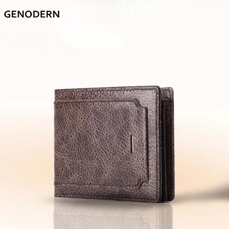 GENODERN, Новое поступление, RFID, короткий кошелек для мужчин, с карманом для монет, натуральная кожа, мужские кошельки, двойные, мужской кошелек, мужской кошелек