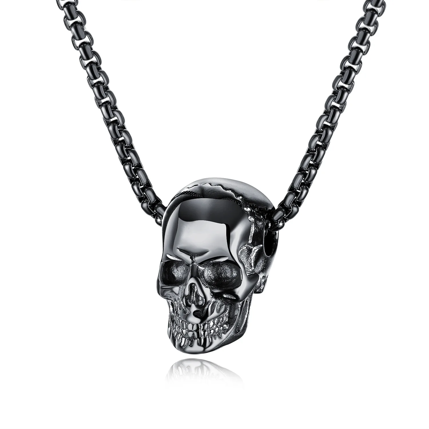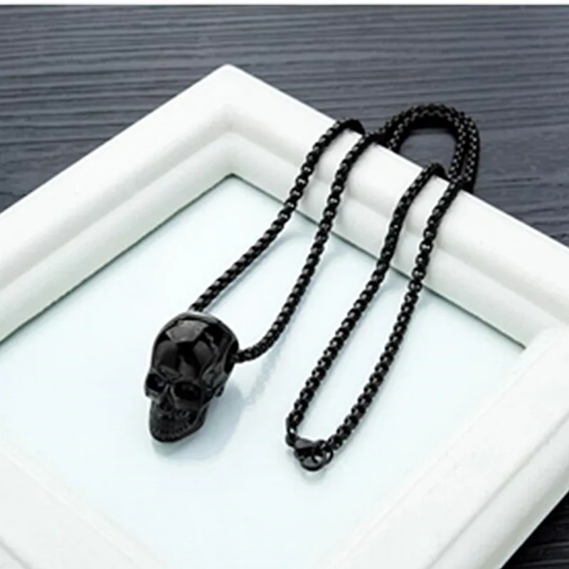 Кулон HNSP с головой черепа в готическом стиле, цепочка из нержавеющей стали 3 мм, ожерелье со скелетом для мужчин и женщин, золотистая, черная, на шею, в стиле панк, ювелирное изделие на Хэллоуин