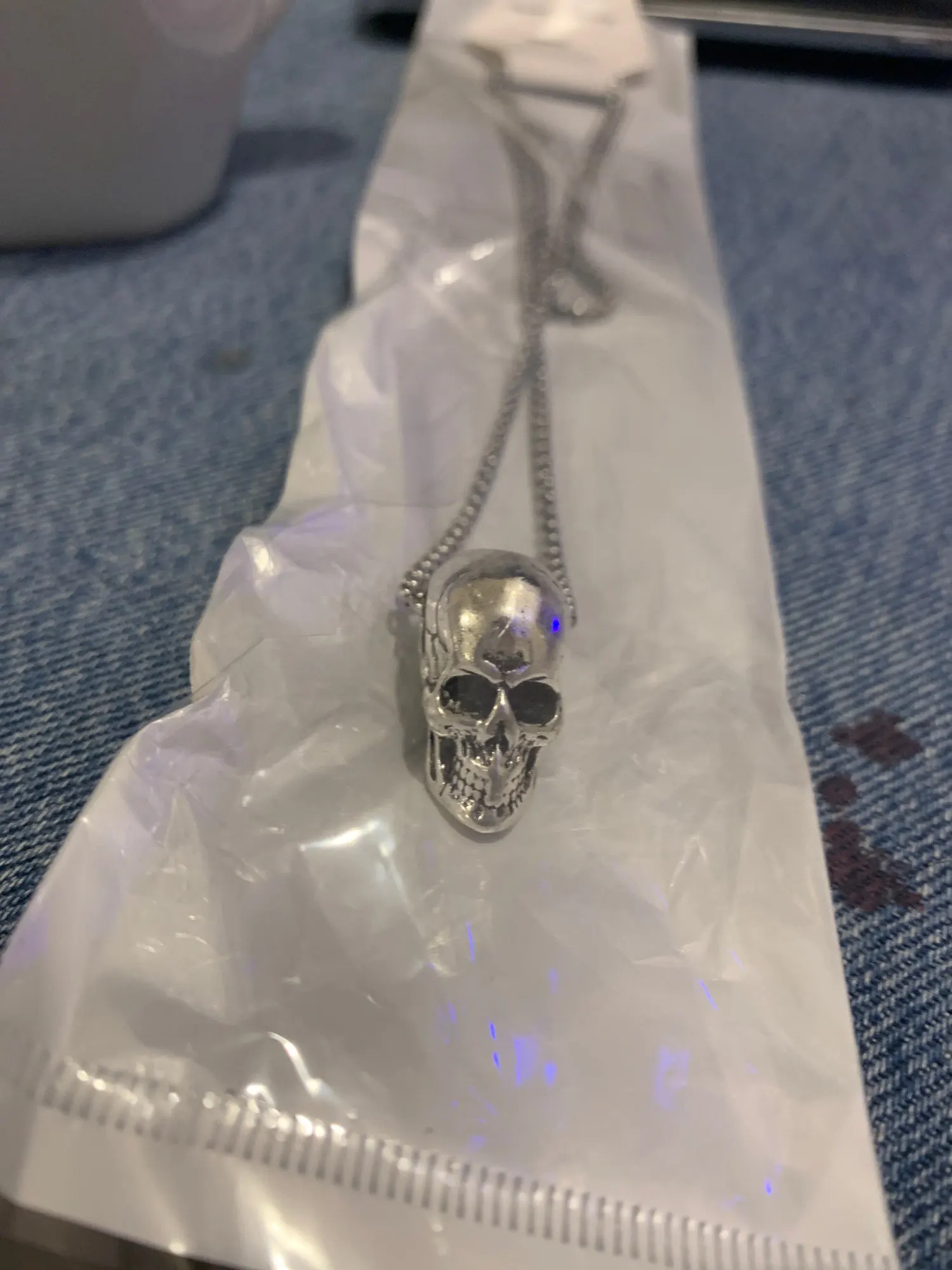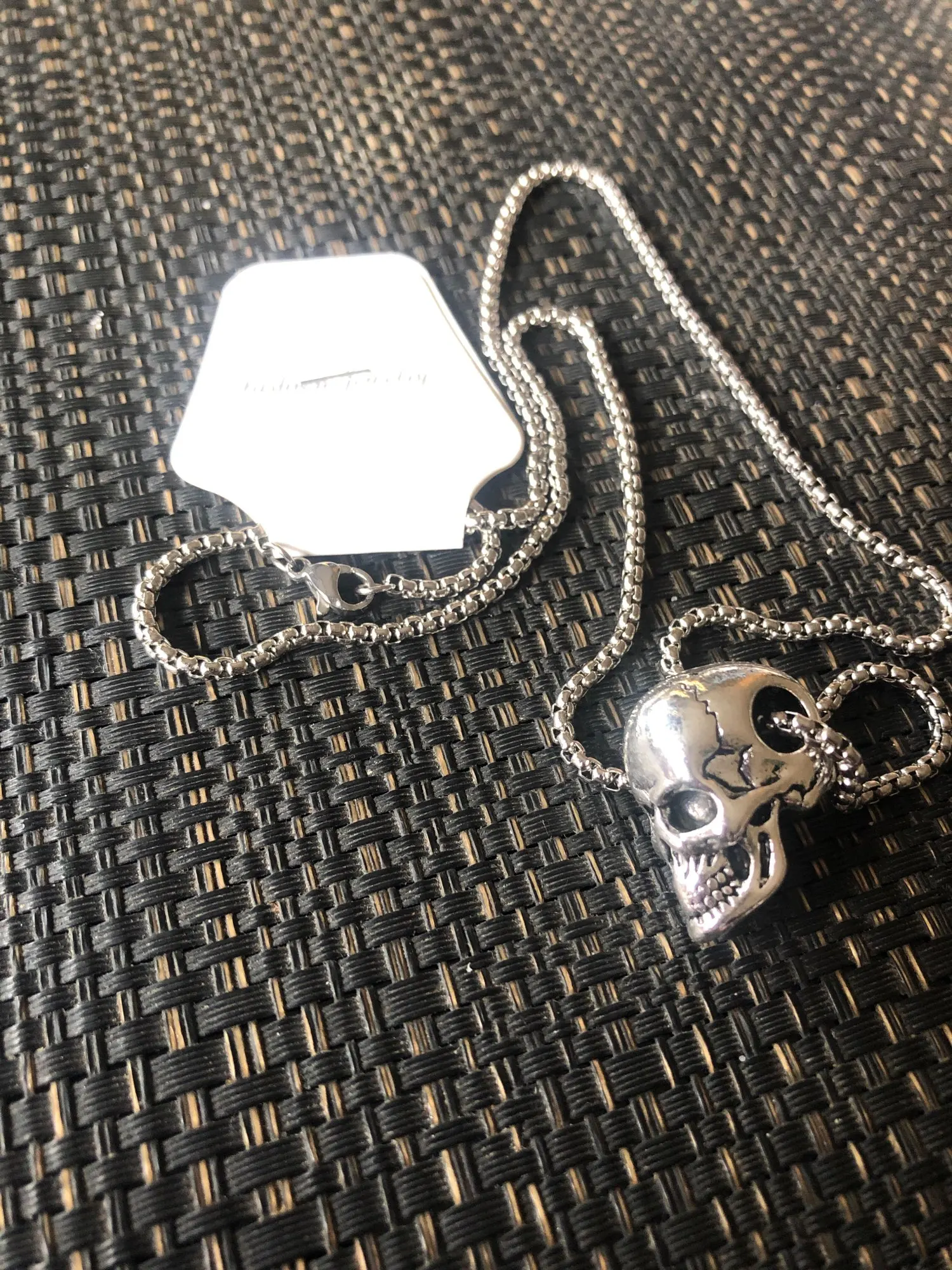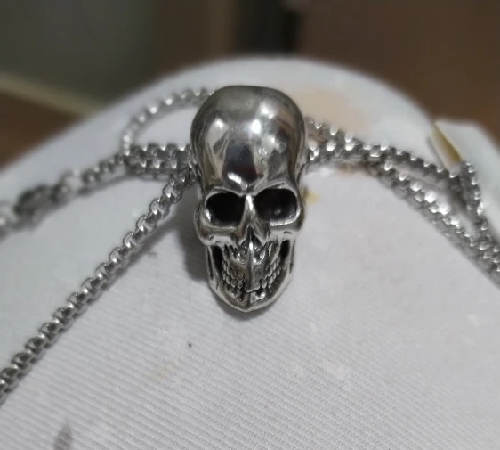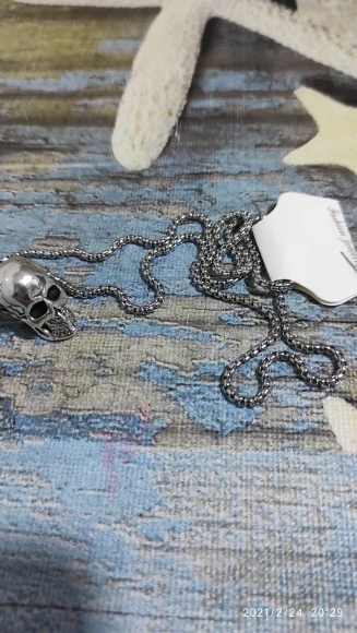 очень длинная цепочка, череп массивный, детализированный, выглядит очень круто