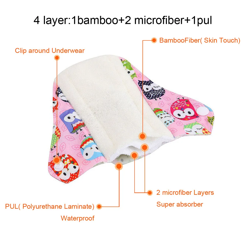 Ohbabyka 5 шт. моющийся санитарный ткань для полотенец, супер-впитывающие мягкие и удобные бамбуковые гигиенические прокладки