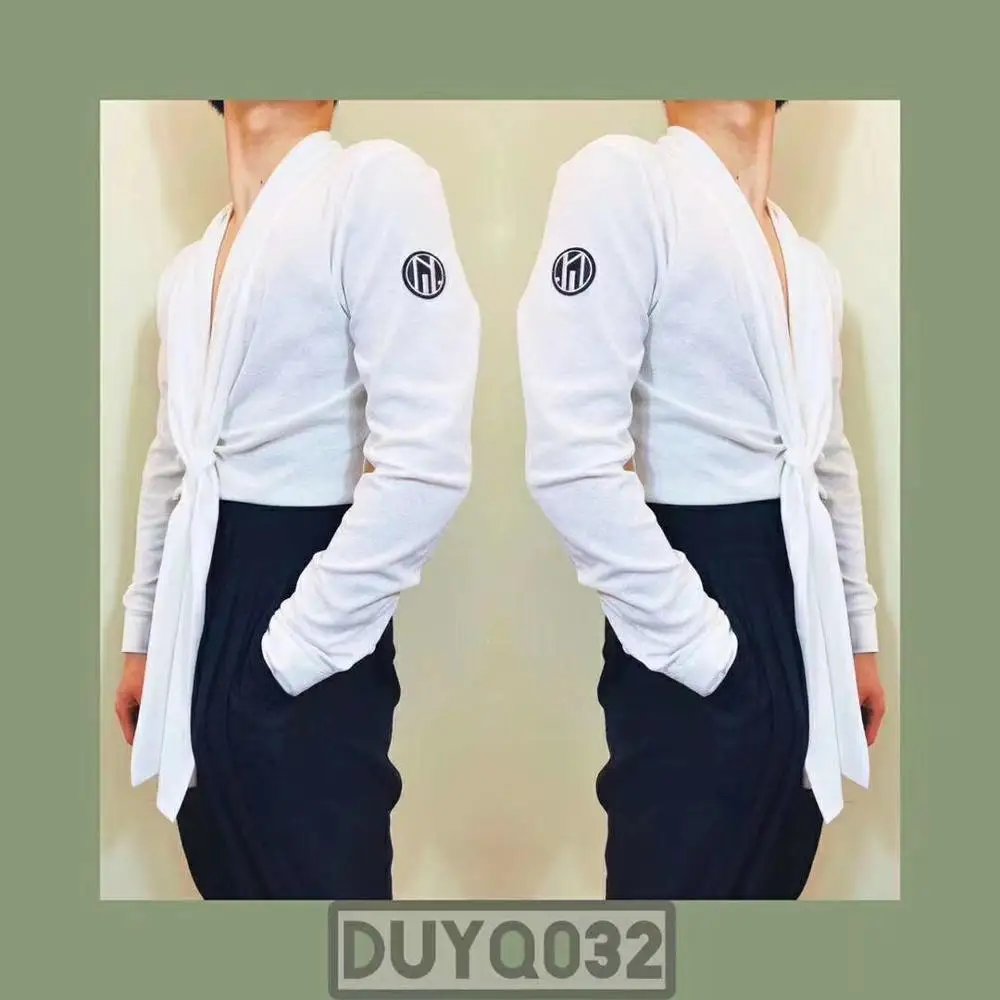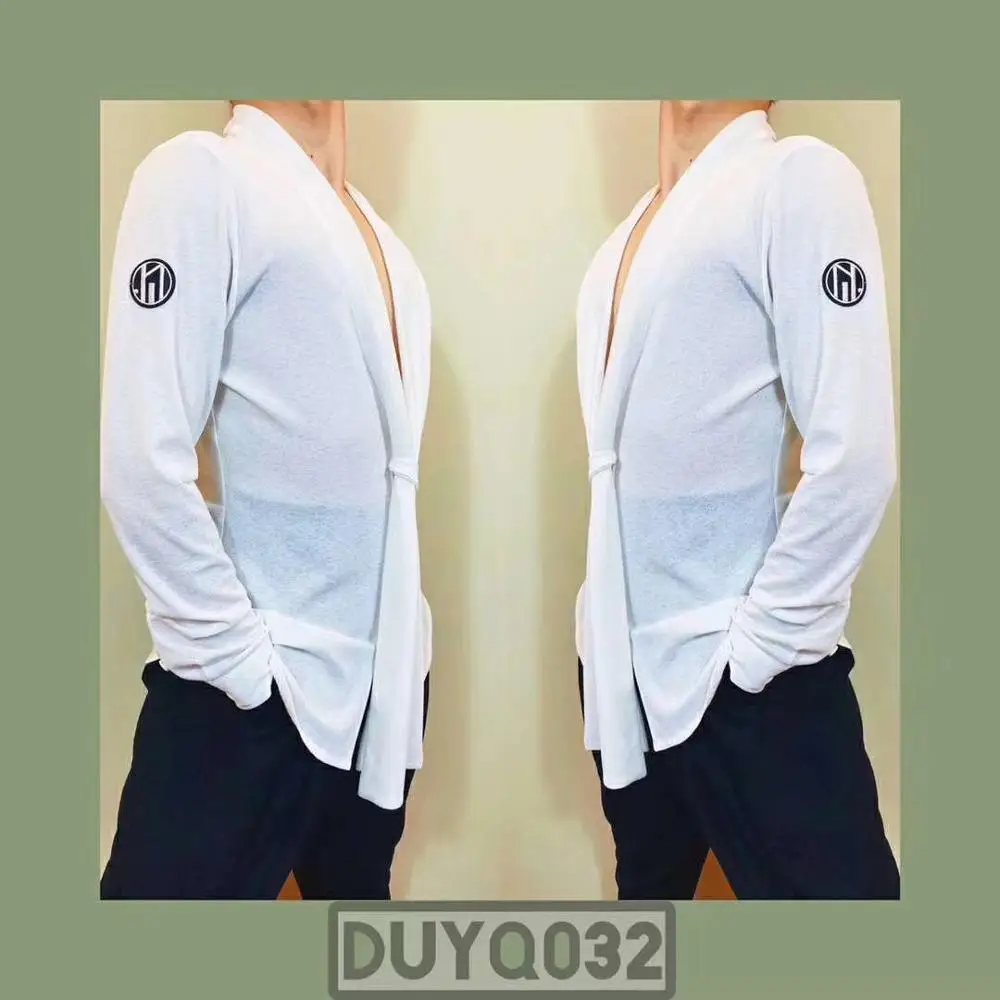 Костюмы для латиноамериканских танцев, Мужская блузка с V-образным вырезом и длинным рукавом, танцевальное платье для взрослых, современные танцевальные топы, рубашки, одежда для выступлений DQS4888