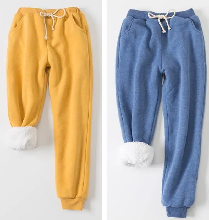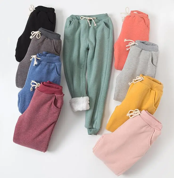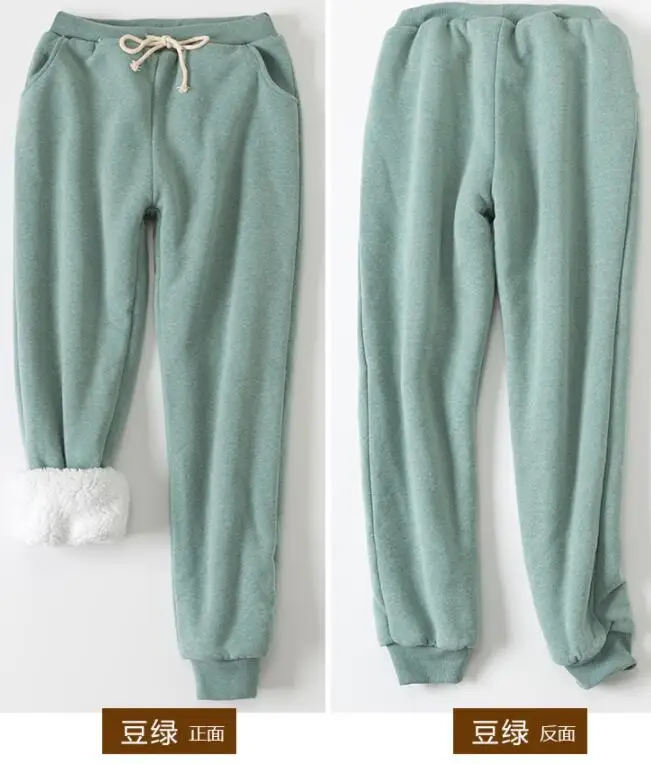 Женские брюки, однотонные Плотные шаровары с эластичным поясом, зима 2021, Корейская версия, новинка, теплые кашемировые брюки из шкуры ягненка, женские брюки