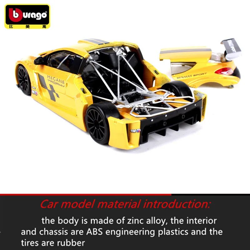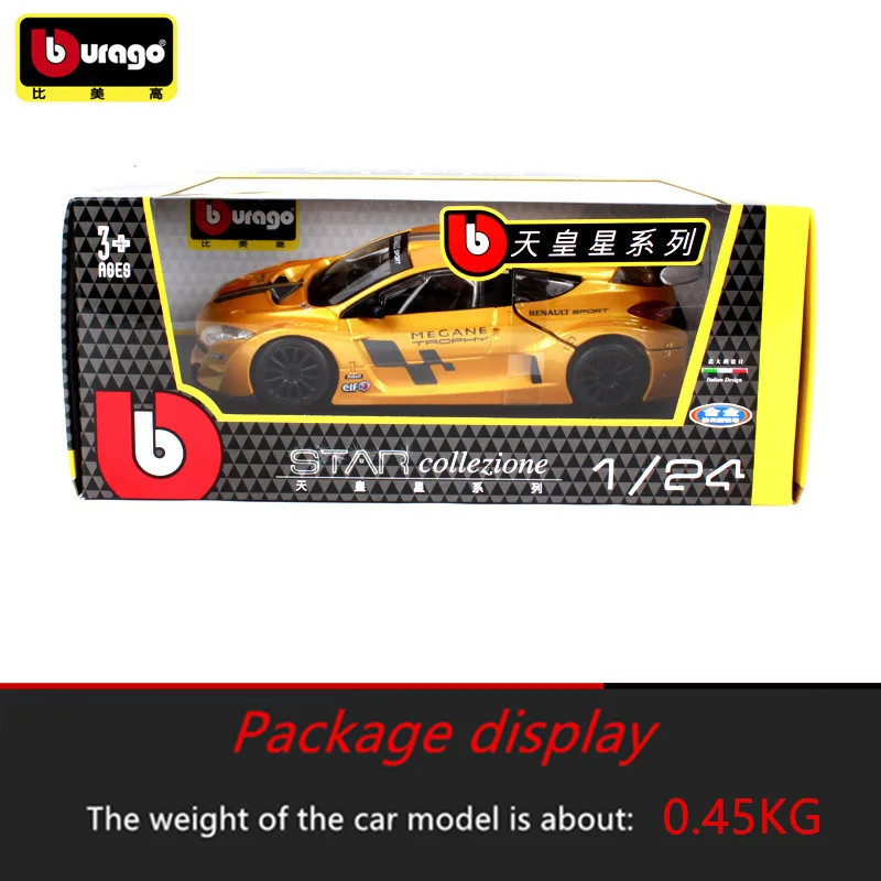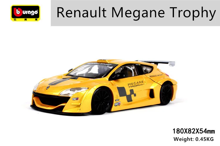 Модель автомобиля Bburago 1:24 Renault Megane, Модель гоночного автомобиля, модель из сплава, украшение автомобиля, коллекционная Подарочная игрушка