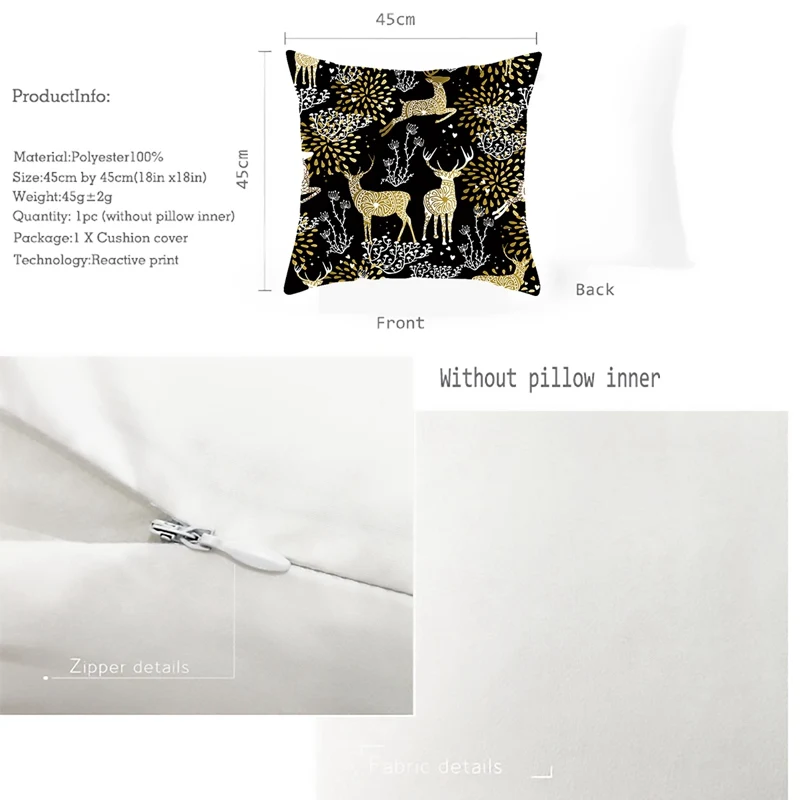 Рождественское украшение, черная Золотая наволочка, Рождественское ...