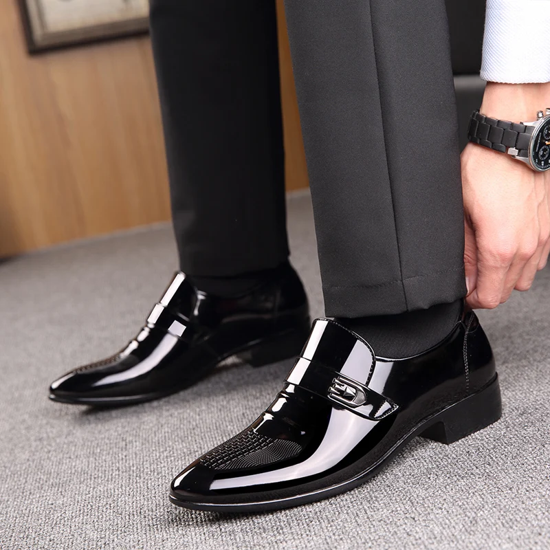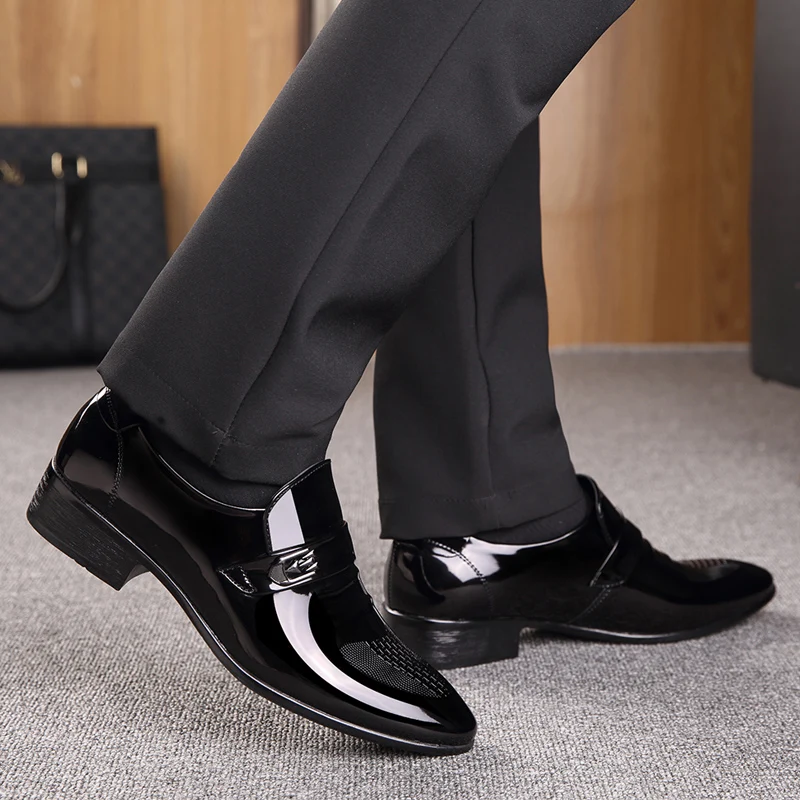 Мужские модельные туфли без шнуровки, из лакированной кожи, деловые туфли, красивые мужские туфли с острым носком для свадьбы, лоферы, s5