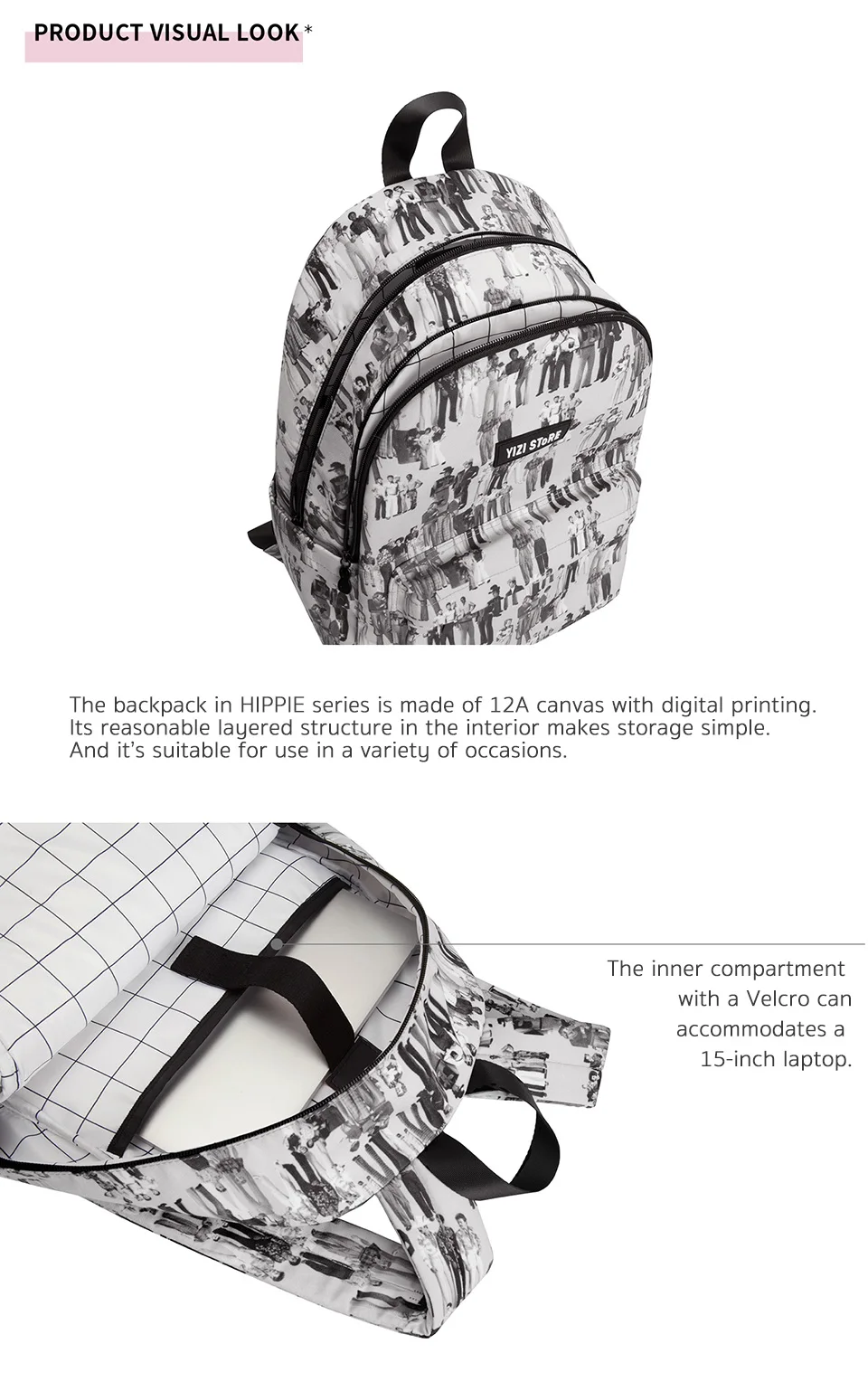 2019 YIZISTORE, вместительный холщовый рюкзак, повседневные креативные 15-дюймовые школьные сумки для подростков из серии хиппи