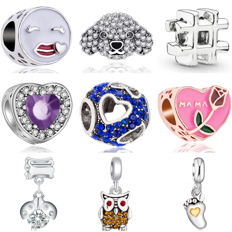 Панковские бусины из сплава, ананас, звезды, сердца, улыбка, собака, Сова, хрустальные бусины, подходят для браслетов Pandora, женские браслеты DIY