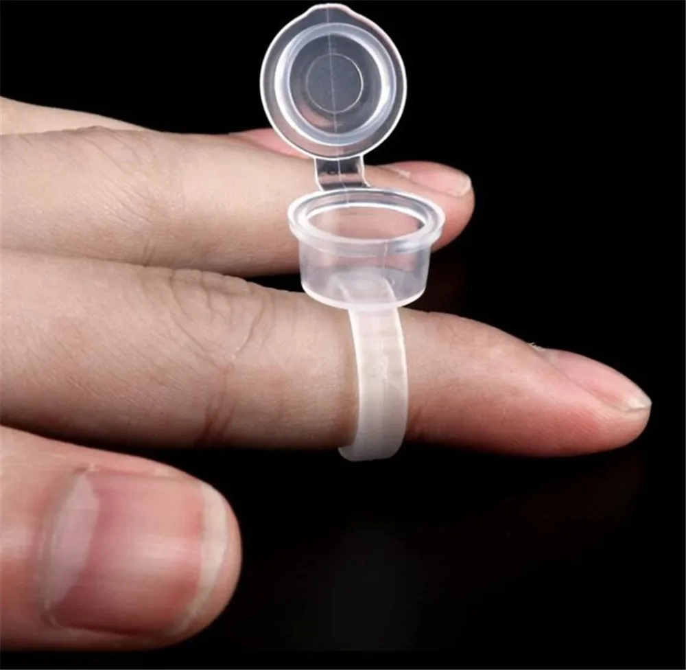 Прозрачный кольцевой стакан для татуировок с крышкой, одноразовый контейнер для перманентного макияжа, микроблейдинга, пигмента