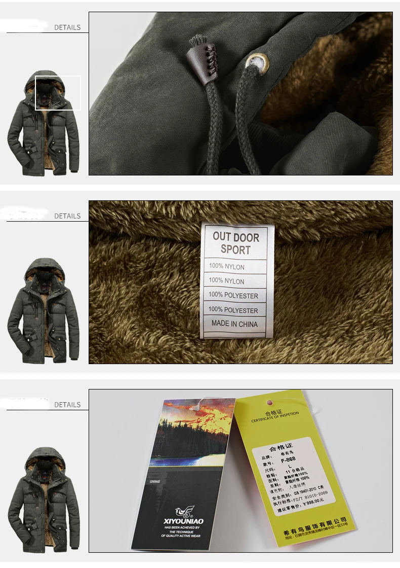 QIQICHEN Для мужчин зимняя куртка плотная Теплая парка Для мужчин р...