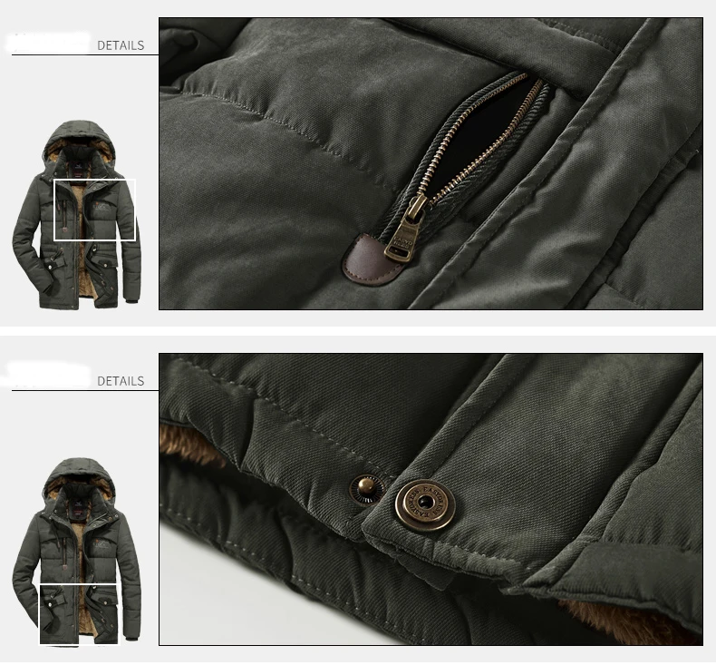 Мужские зимние куртки с карманами повседневные Теплая парка Толстая...