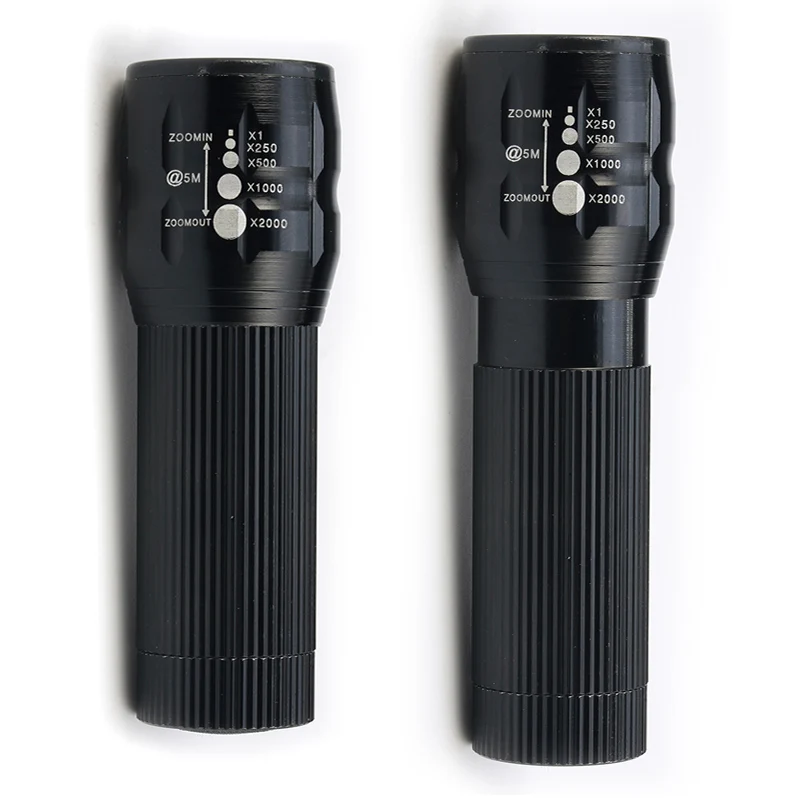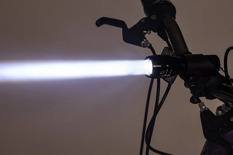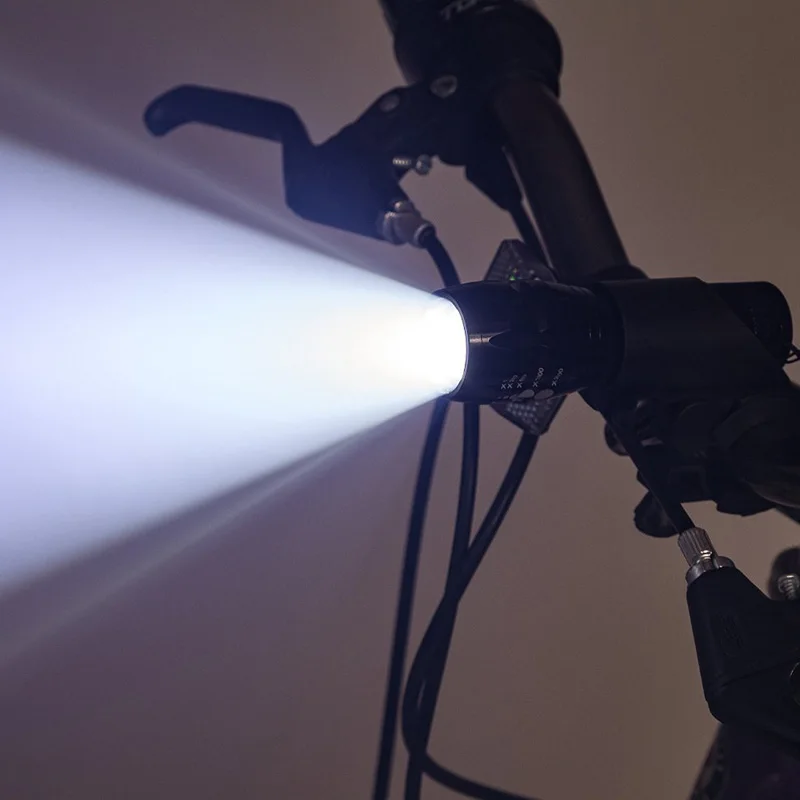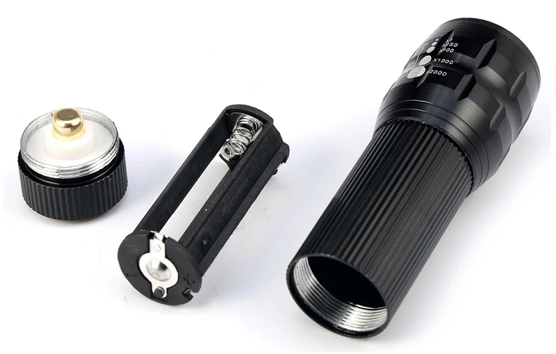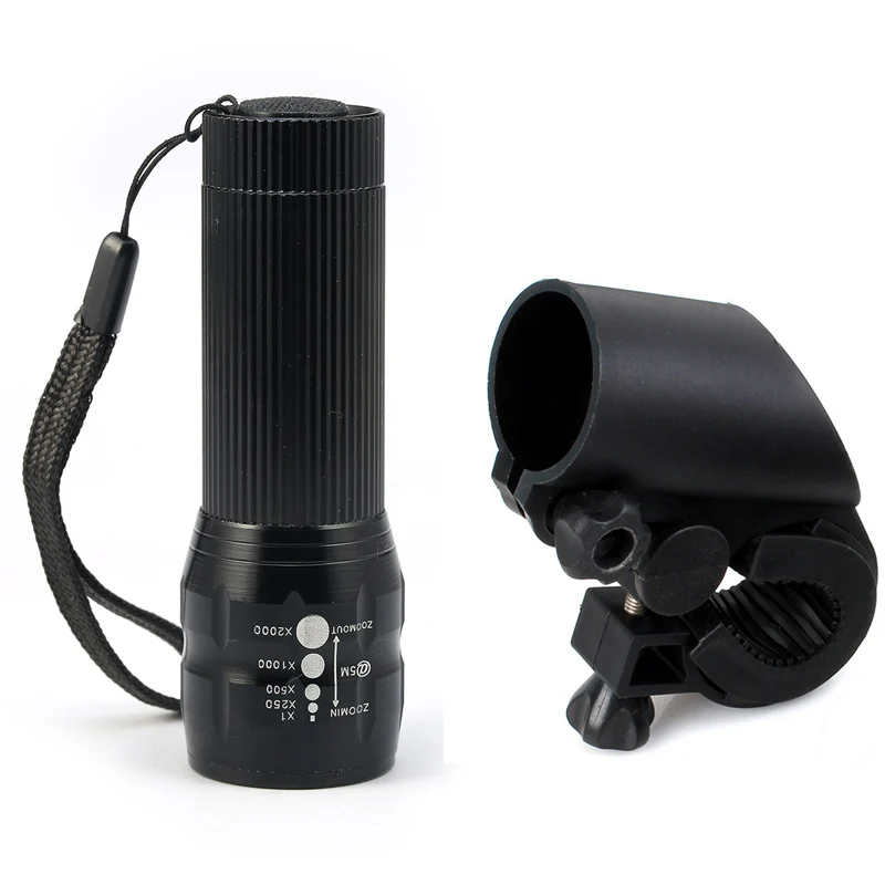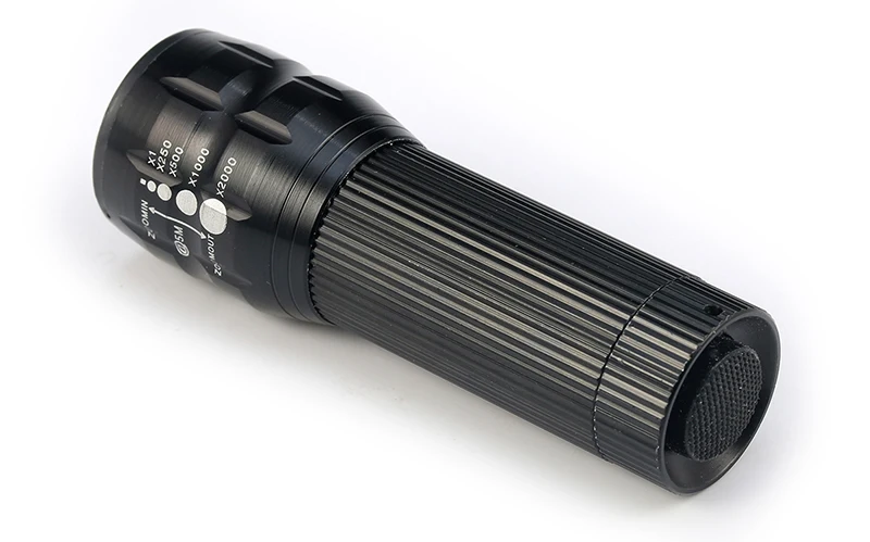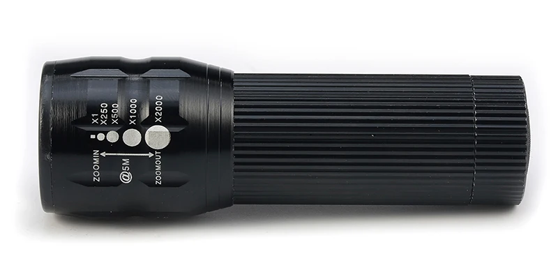 -Использование ламп Q5, Максимальная яркость 2300LM,Расстояние облучения 200-500 м