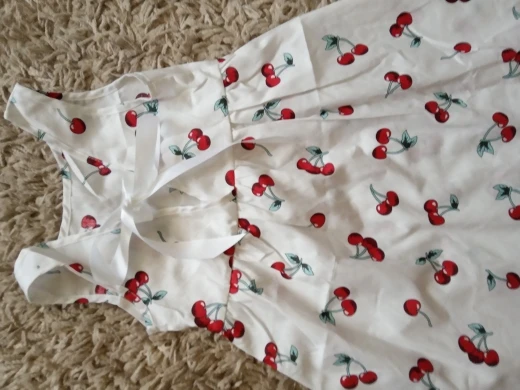 Платье очень тоненькое, на хлопок не похоже, хотя написано 100% котон. На ребенка ростом 98 см размер 110 село идеально. Ткань просвечивает, на последнем фото подложила руку, чтоб было видно. Ленточки, когда завязываешь, получаются наизнанку.