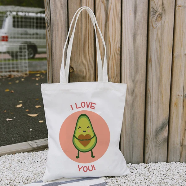 Холщовая Сумка-тоут Kawaii с авокадо и клубникой на заказ, Экологически чистая сумка для покупок с логотипом для девочек, повседневные женские сумки на плечо