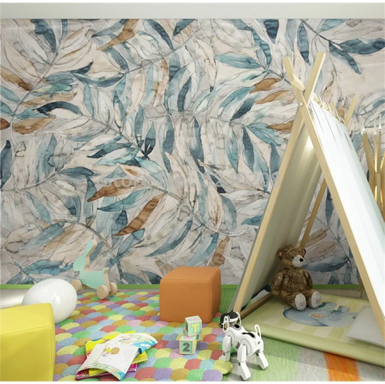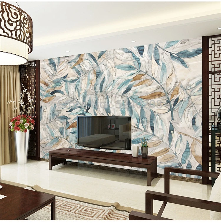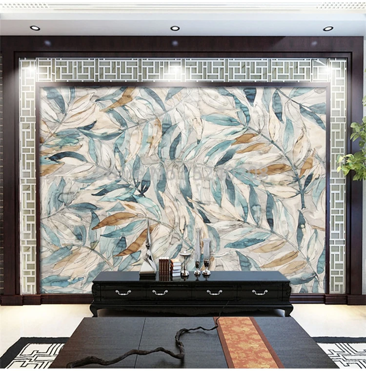 Фотообои на заказ, Современная ретро ручная роспись, фон с листьями...