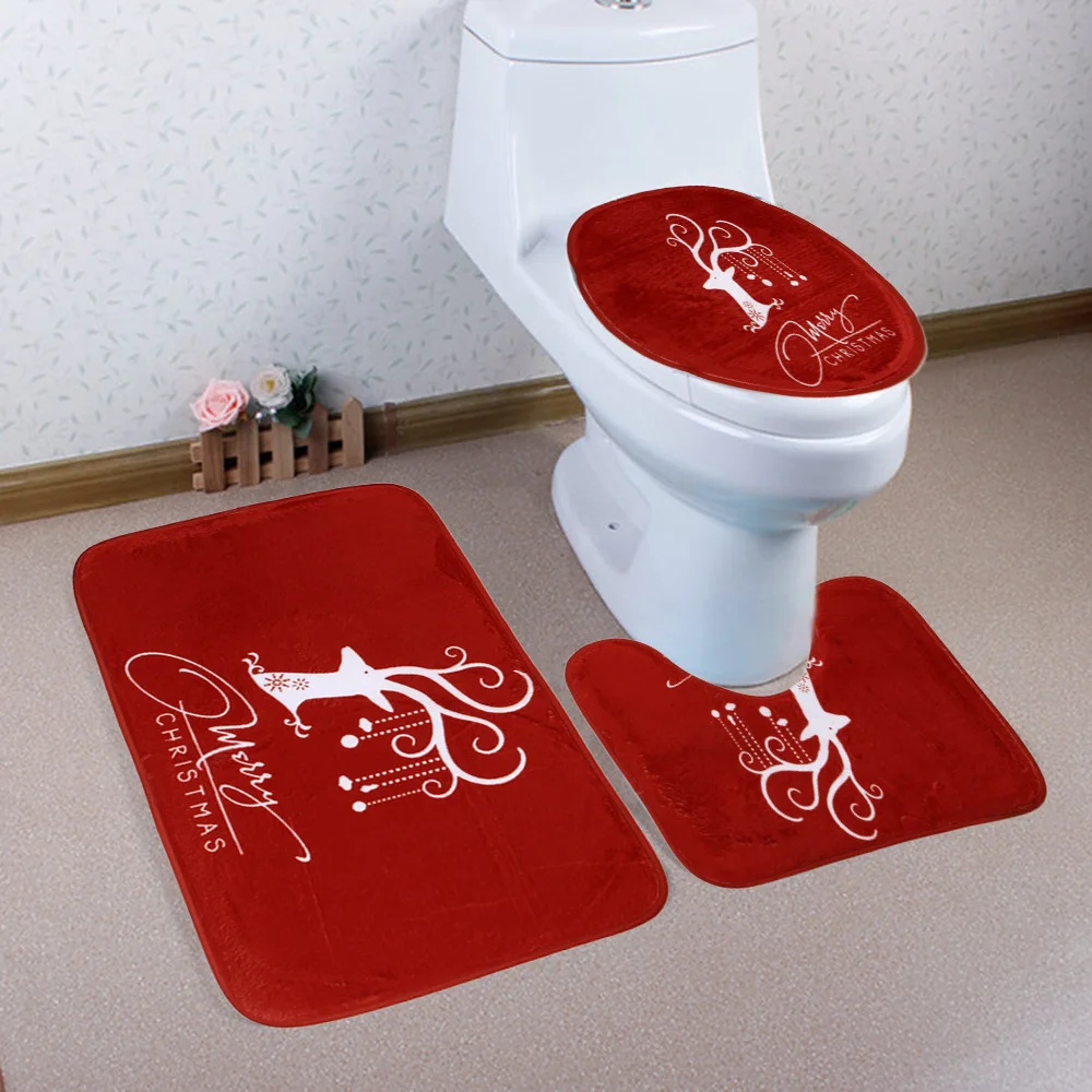 WC, сиденье для унитаза чехол, Рождественский коврик для ванной, коврик для унитаза, украшение для тапы, Рождественская Тампа для ванной, унитаза 3 шт.компл.