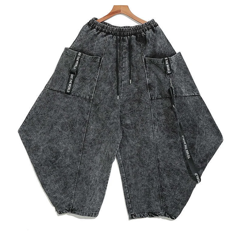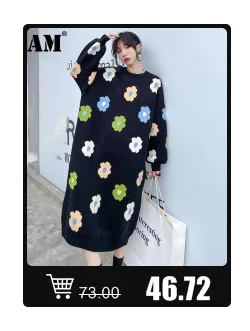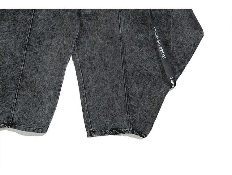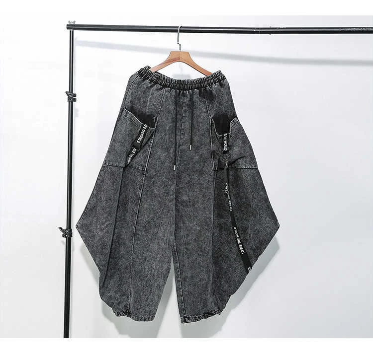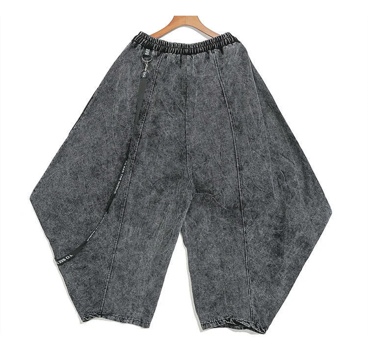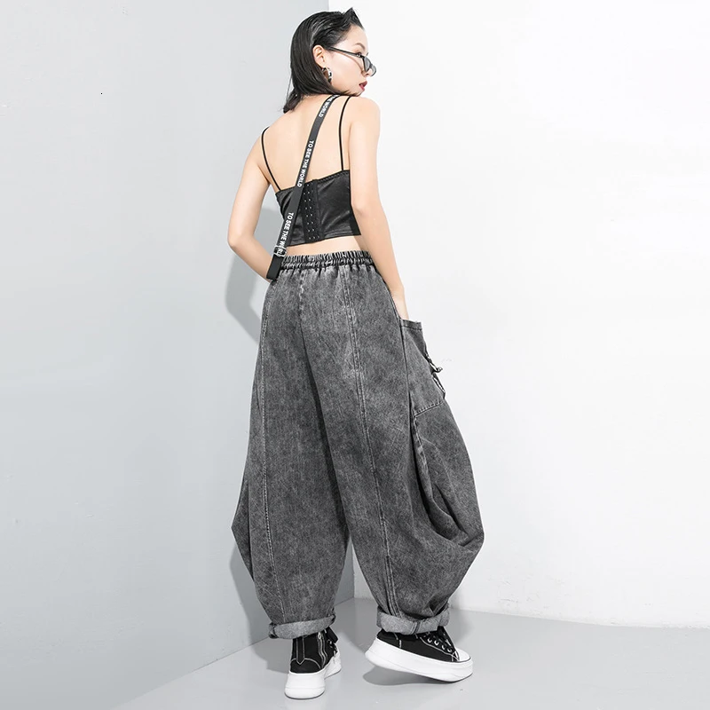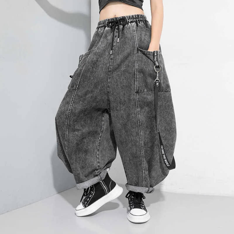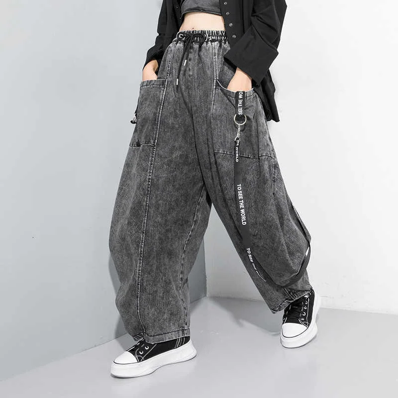 EAM широкие черные джинсы большого размера с тесьмой новые свободные женские брюки с высокой талией модные демисезонные 2022 1D202