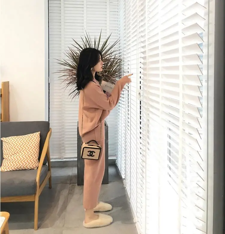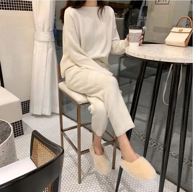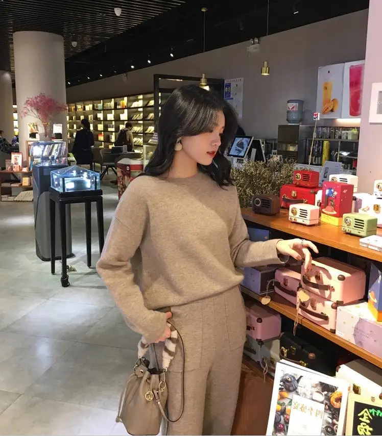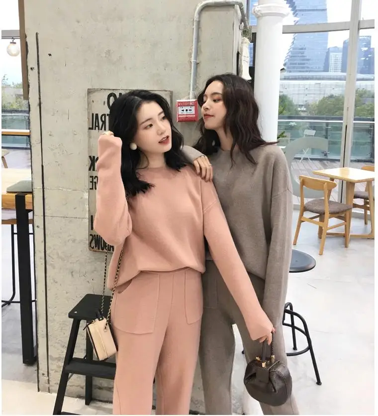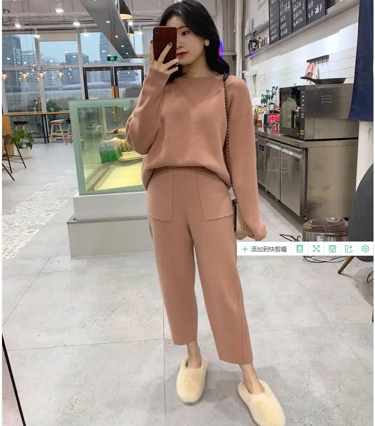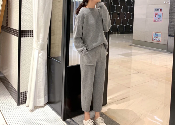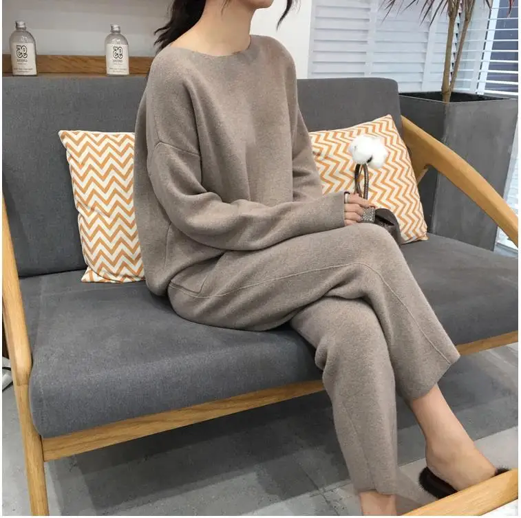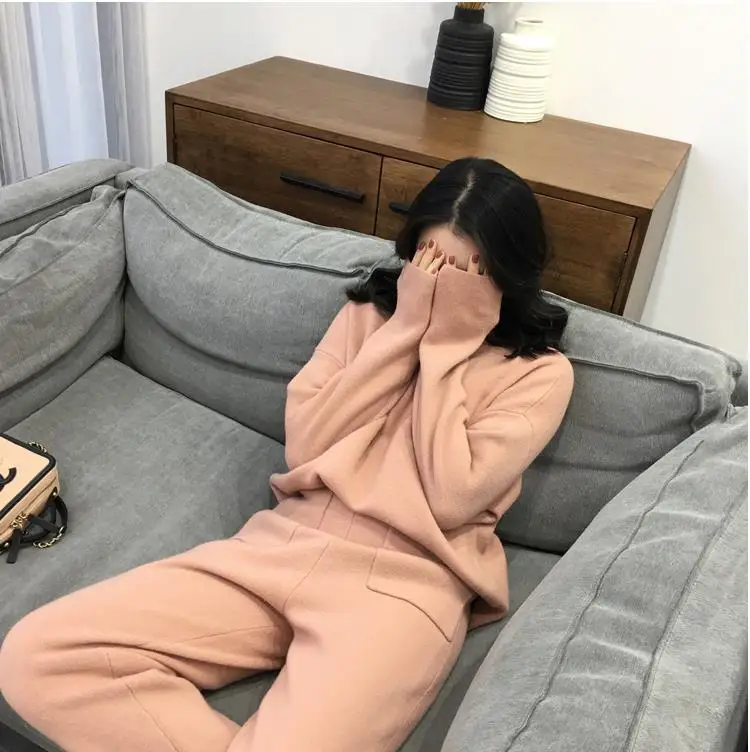 Женское высокое качество новый зимний женский кашемировый свитер из двух частей трикотажные наборы спортивный костюм 2019 модные толстовки спортивный костюм 2019