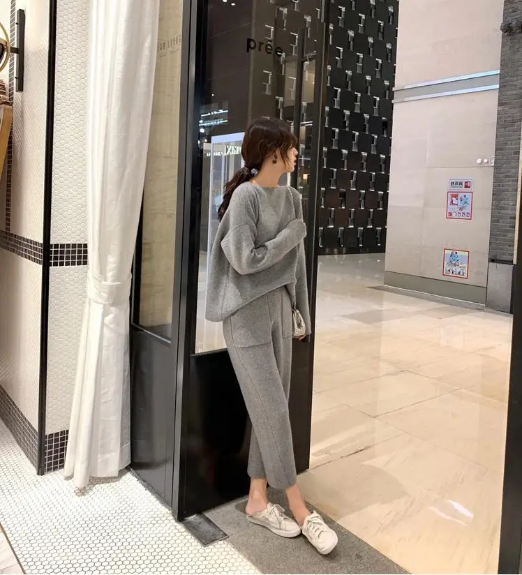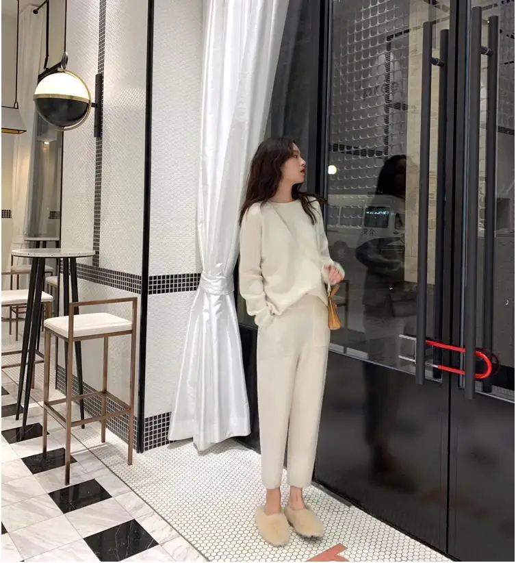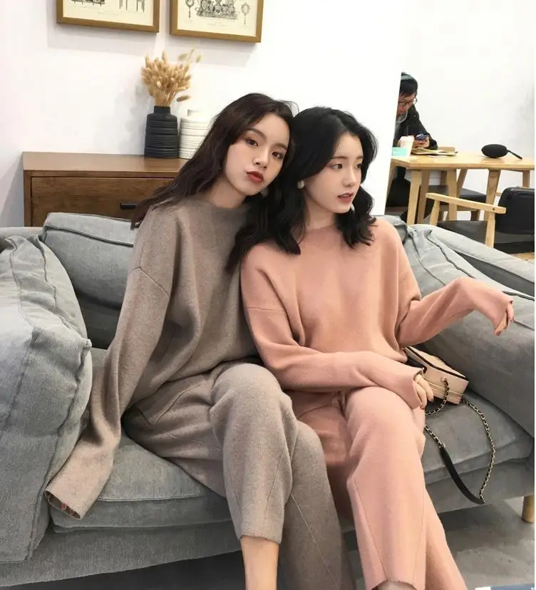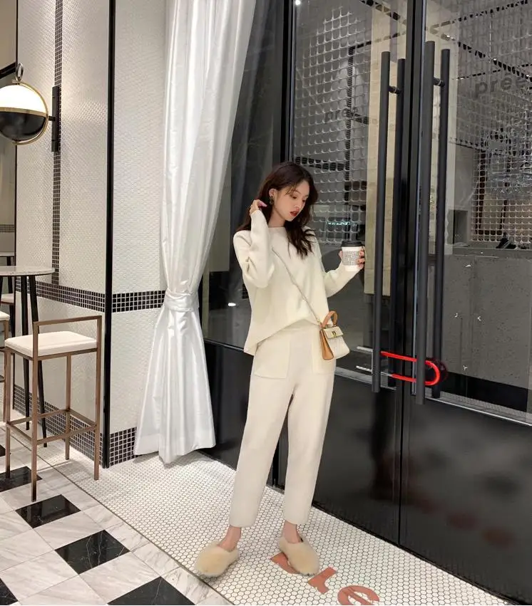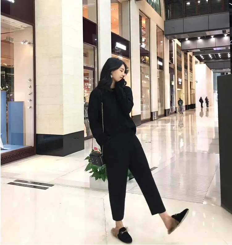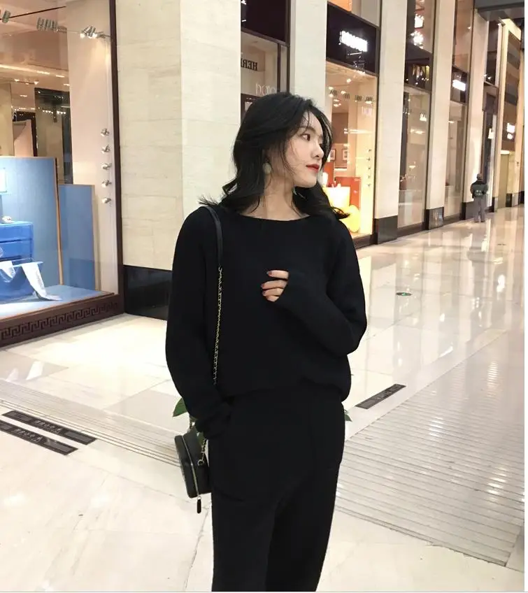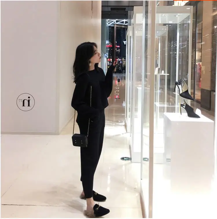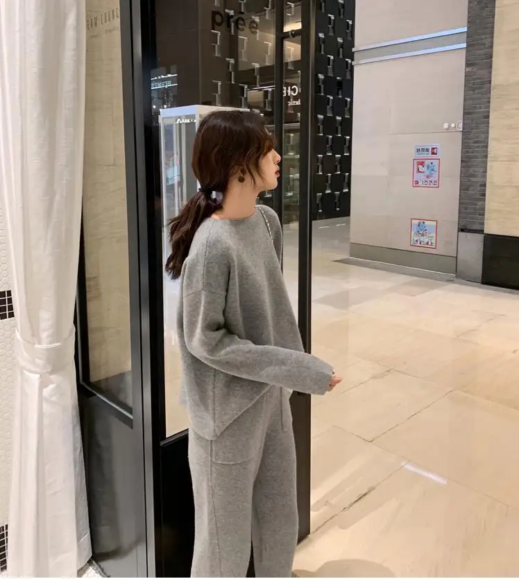 Женское высокое качество новый зимний женский кашемировый свитер из двух частей трикотажные наборы спортивный костюм 2019 модные толстовки спортивный костюм 2019