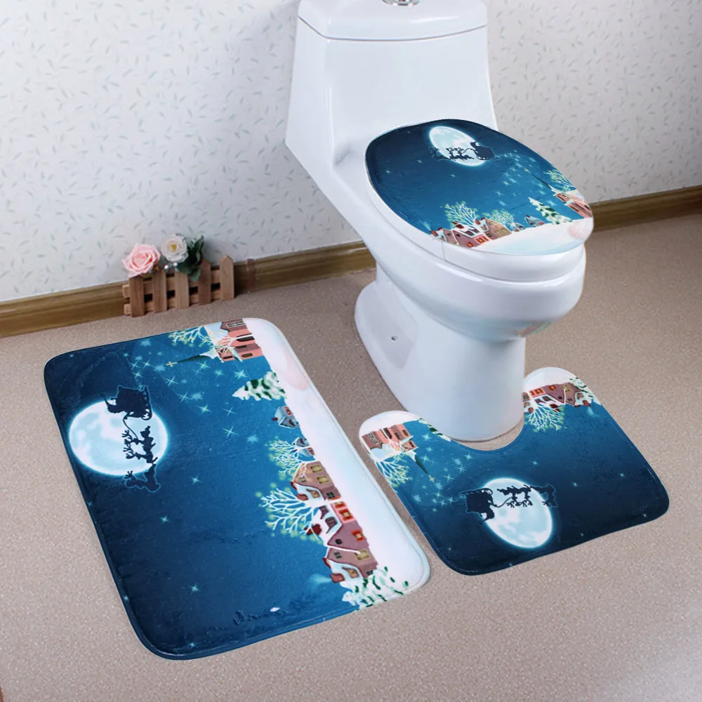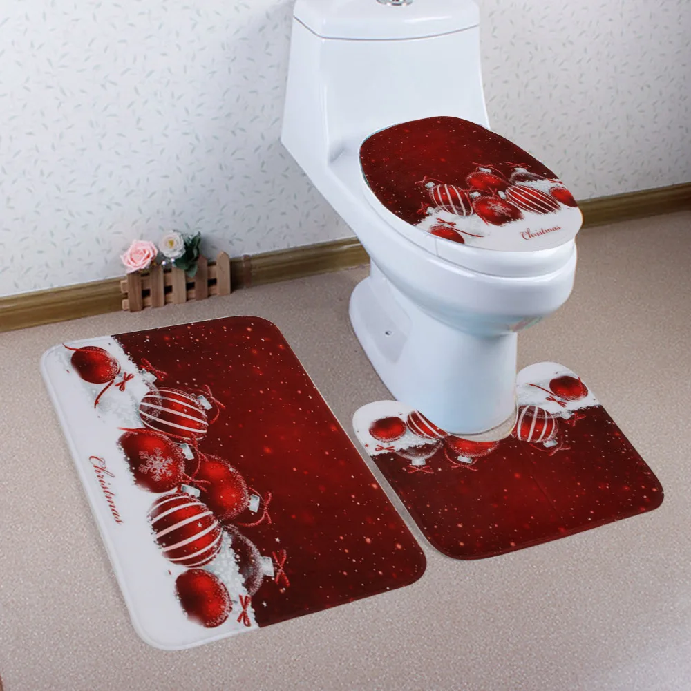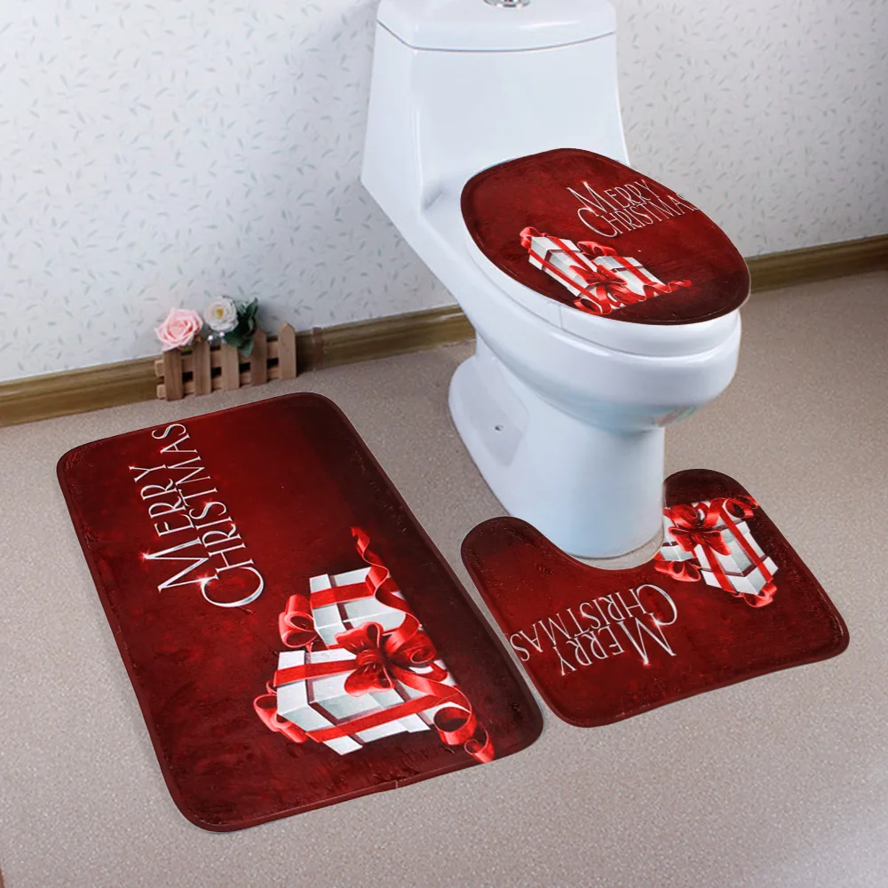 Рождественский коврик для ванной, искусственная Обложка, подогреватель сиденья, тапас, коврик для унитаза, украшение, рождественский комод для ванной комнаты