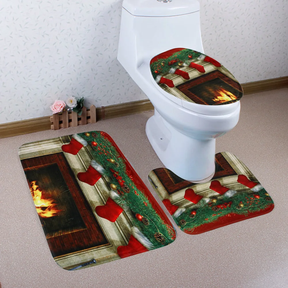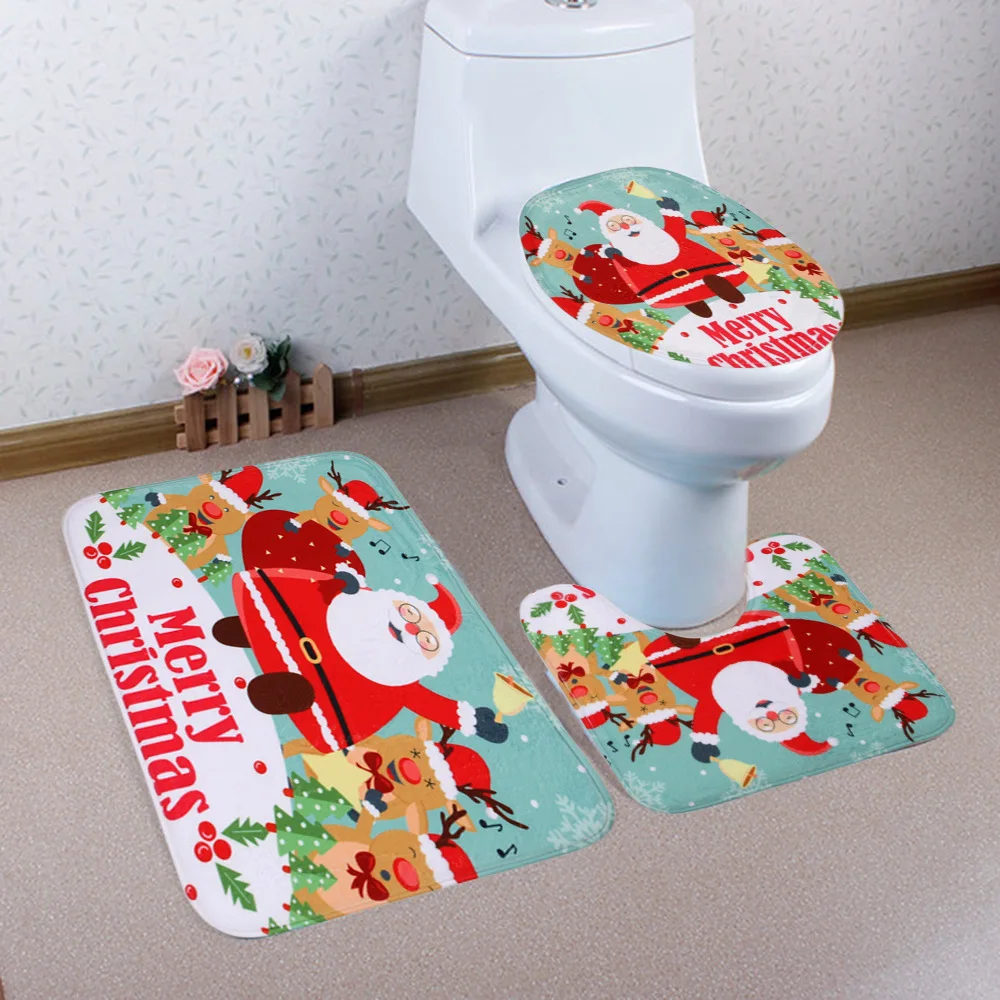Рождественский коврик для ванной, WC, сиденье для унитаза крышка, коврик для унитаза, Декоративный Рождественский комод, унитаз