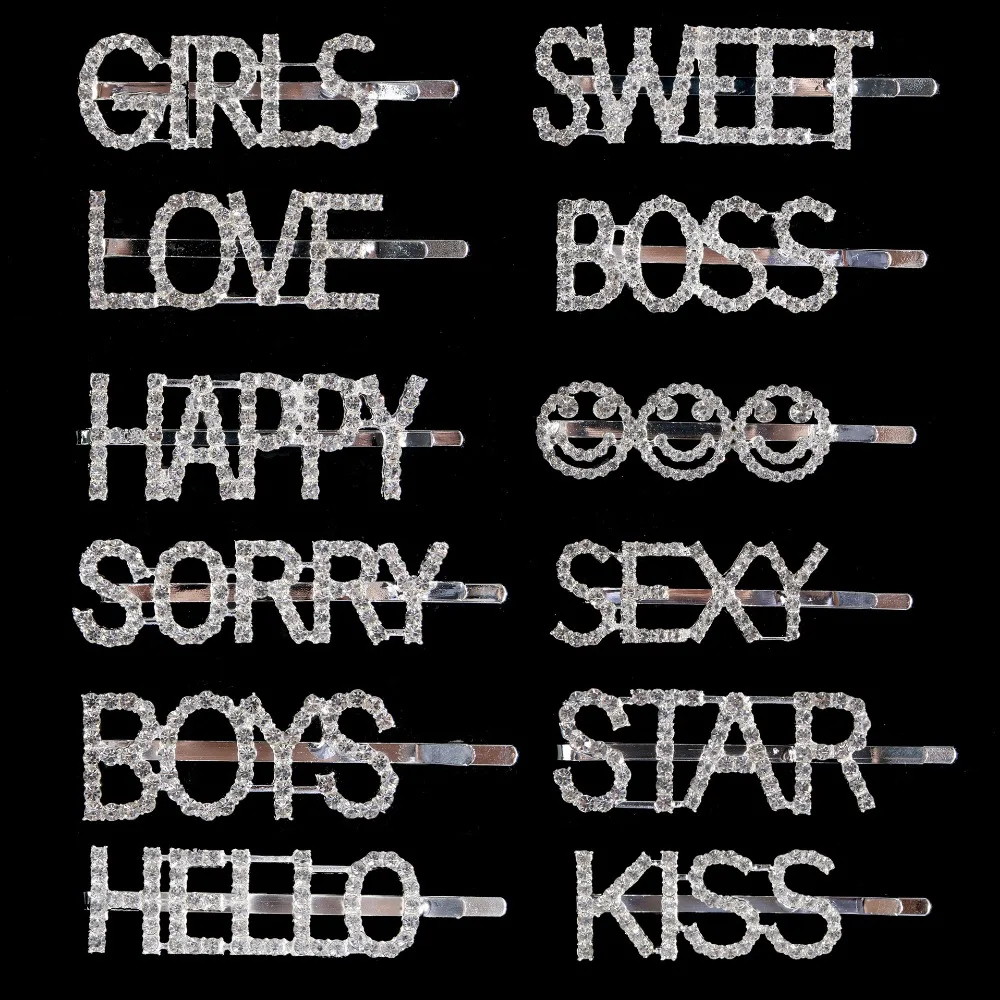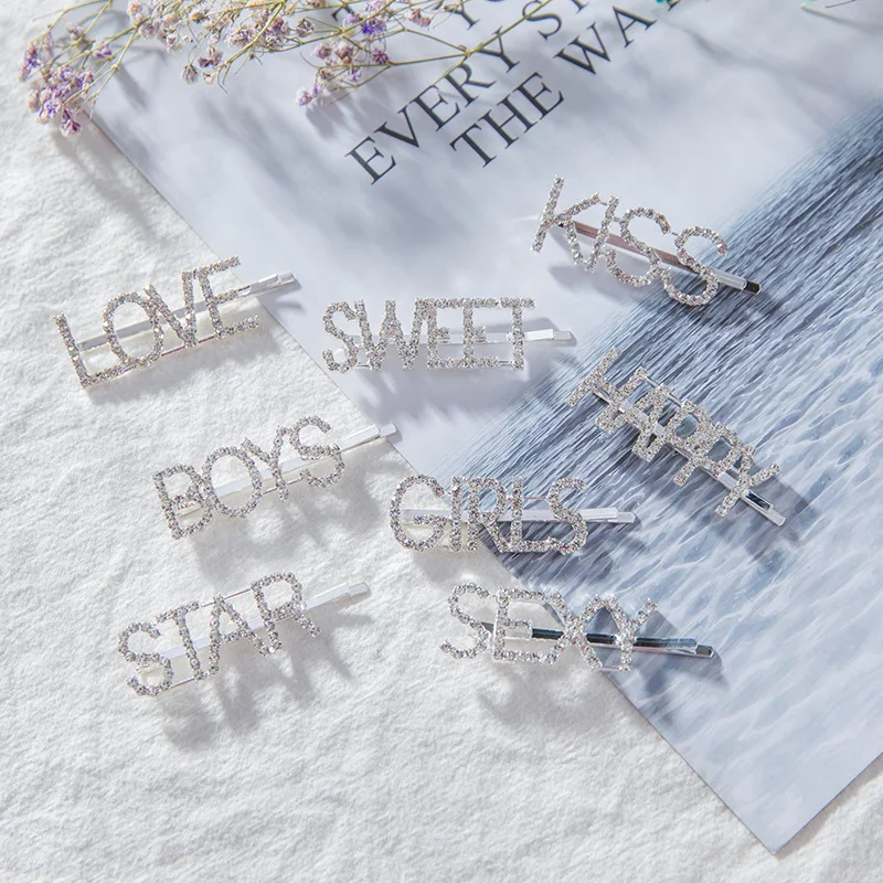 1 шт. заколки для волос с блестящими буквами, Кристальные блестящие стразы, заколки для волос с буквами, женские заколки для укладки, аксессуары для волос с бриллиантами
