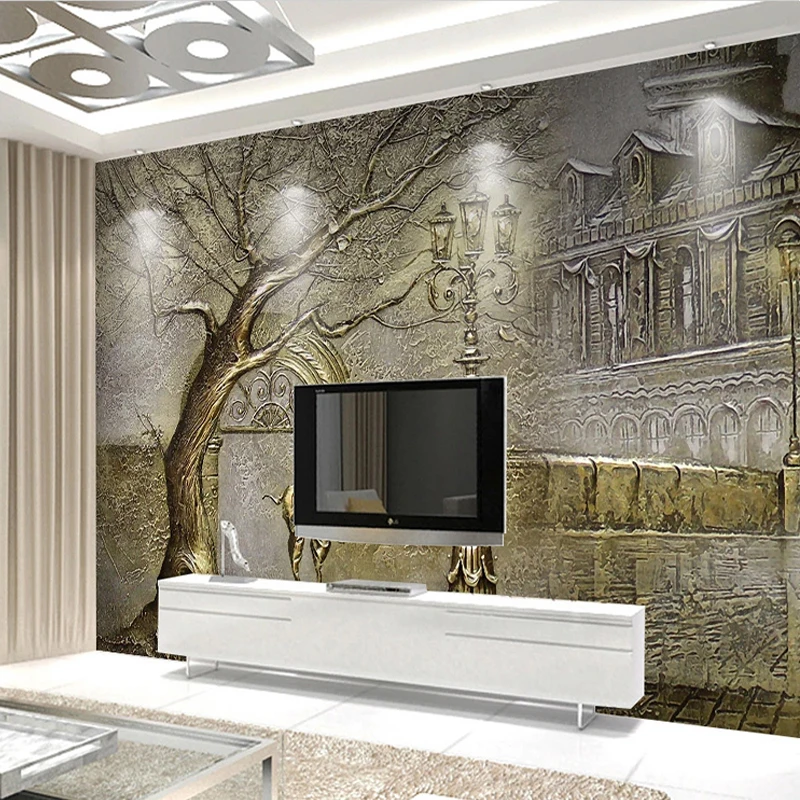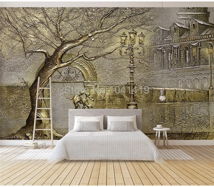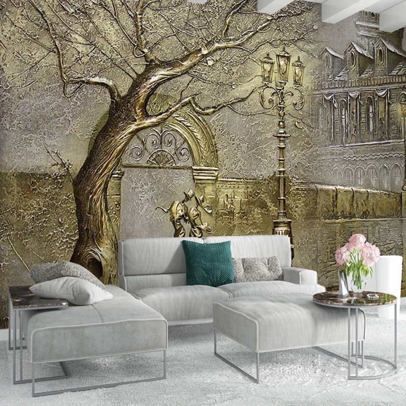 Пользовательские Настенные обои Европейский Стиль 3D стерео золотое дерево уличный вид фигурка Фреска гостиная спальня Роскошный декор обои