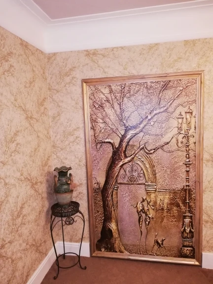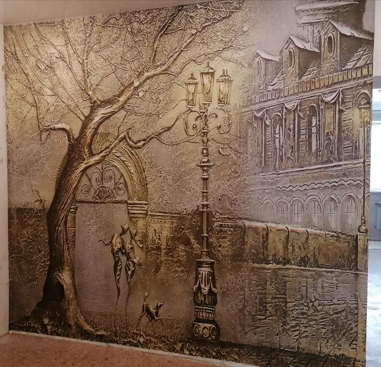 Доставка меньше месяца до Москвы. Заказывали 240Х255, пришло 3 полотна. Упакованы хорошо, ничего не помялось. Учитывайте, что чем больше размер, тем больше будет "распиксельным" изображение. Брали основу - устойчивая, это тканевая основа, обои тонкие, все неровности на стене могут быть заметны. Клеили на келид спец винил, приклеилось отлично. Клеится внахлест, с заходом в 2 см, подобрать рисунок ровно легко. Перед заказом связывалась с продавцом - объяснил всё грамотно, написал подробно как сделать заказ на наш размер. Огромное спасибо, очень ответственный продавец. Заказом довольны, очень атмосферный "Пушкинский" рисунок, сидишь, разглядываешь, релакс полный.