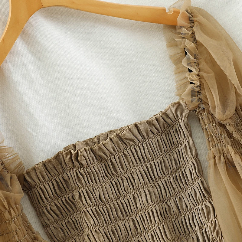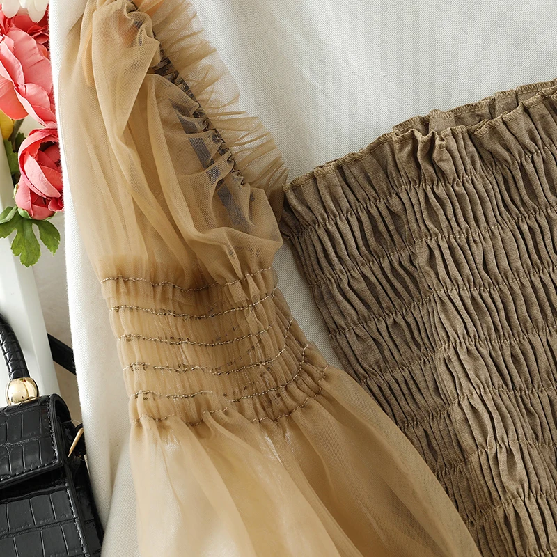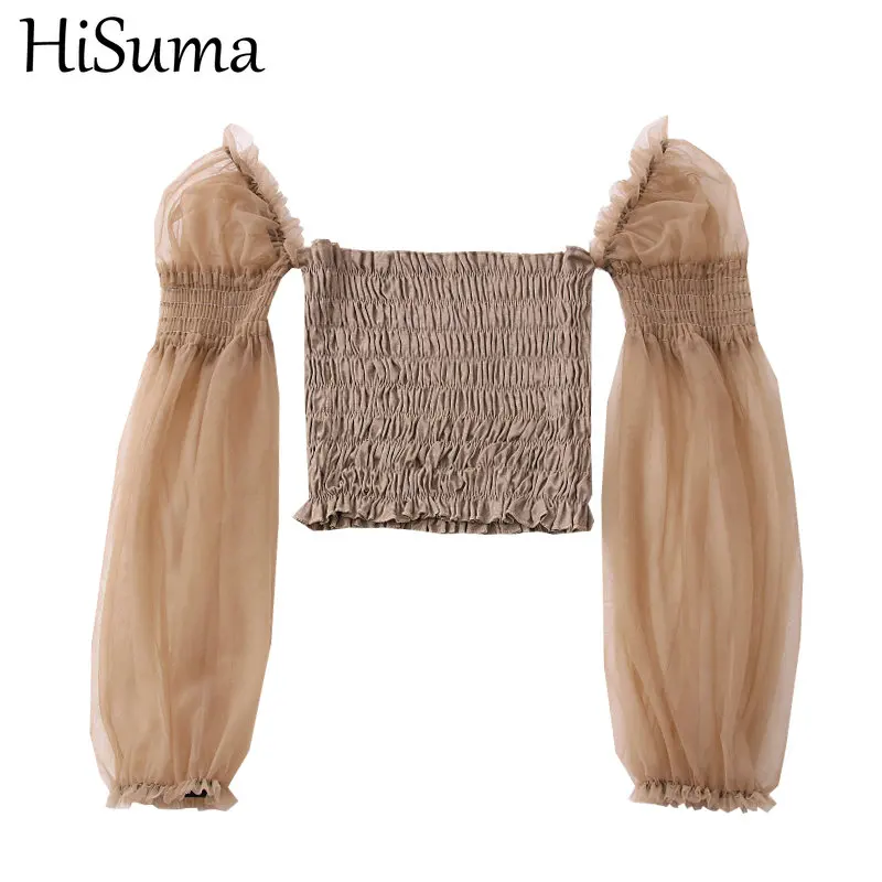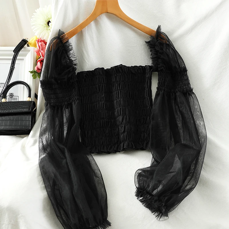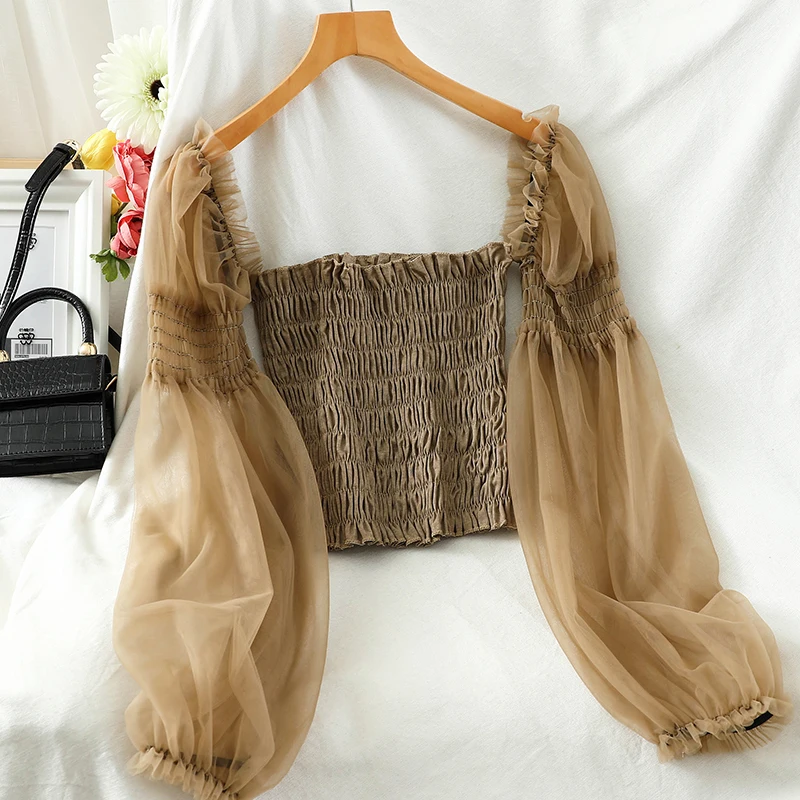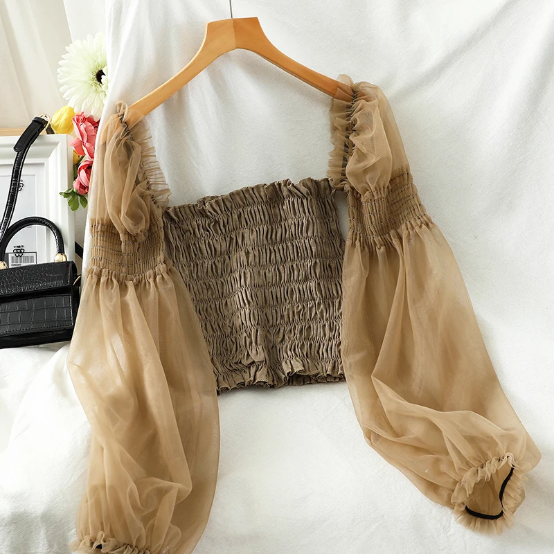 Женская шифоновая блузка, с квадратным вырезом и рукавами-фонариками, весна-осень