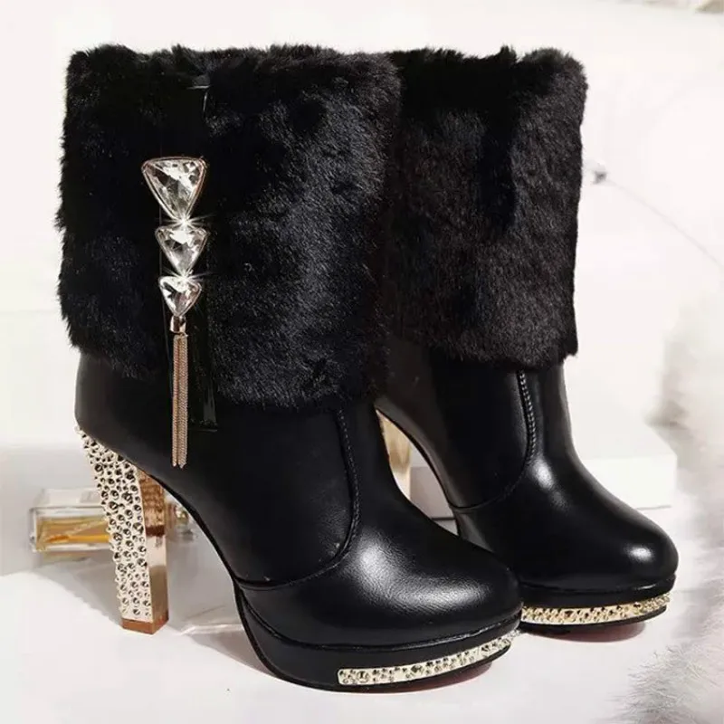 Женские ботинки на высоком каблуке, Теплые ботильоны из кроличьего ...