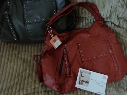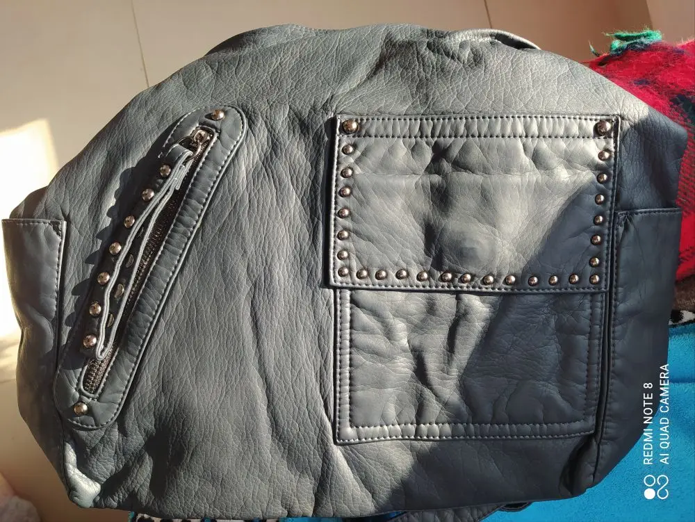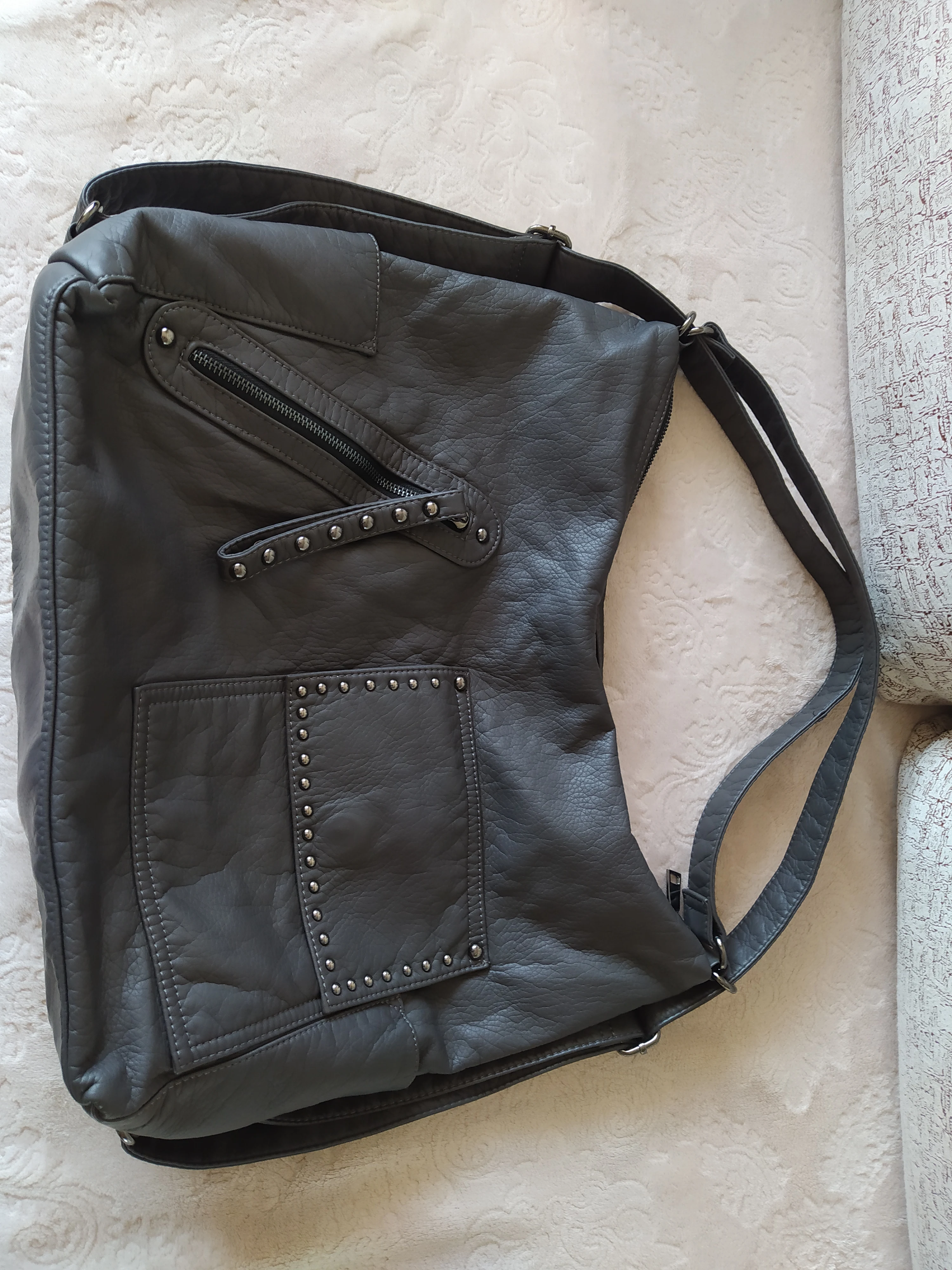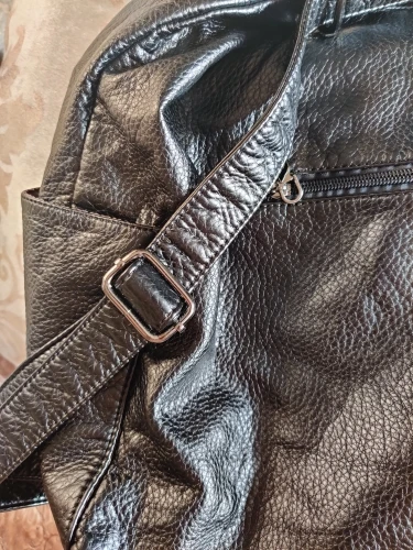 Это уже вторая сумка. Первой (серой) год - нет ни потертостей ни царапин, хотя особо не берегу и иногда таскаю в ней тяжёлые покупки. Правда, как рюкзак не использую, только через плечо ношу. Сумки очень классные! У коричневой не передаётся правильно цвет. Она не рыжая и не коричневая - что-то среднее. И у этих сумок очень классная фурнитура - тяжёлые металлические пряжки, заклёпки, языки замков!