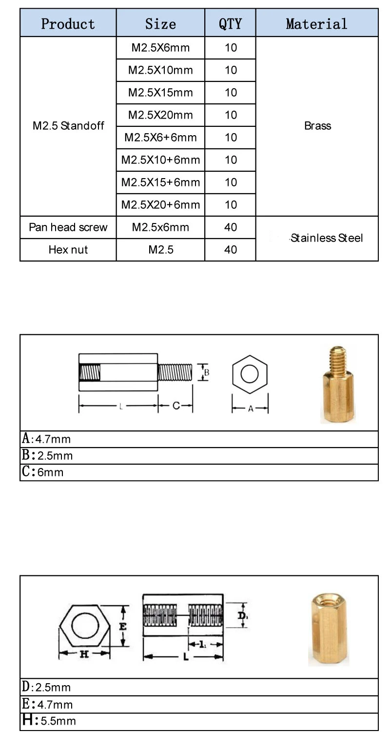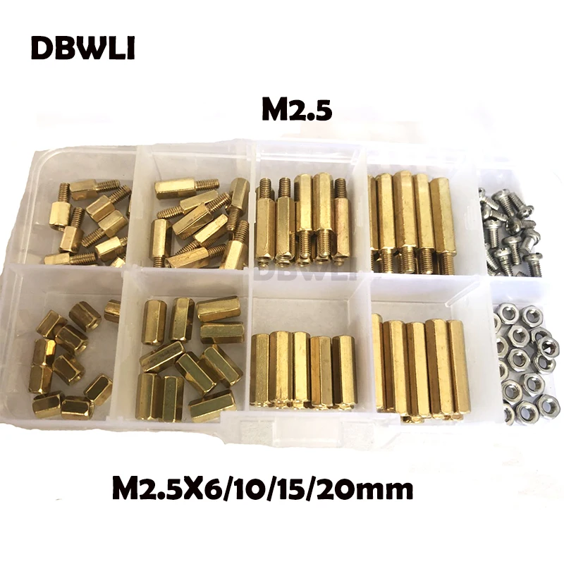 120 шт. M3 M2.5 латунная Мужская и женская Шестигранная стойка, монтажная плата, шестигранная материнская плата, распорный болт, набор гаек для винтов, набор комплектов