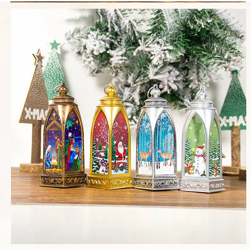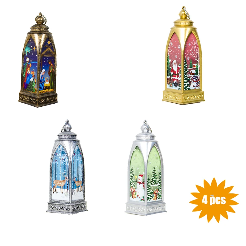 4 шт. Батарея работает рождественские огни украшения Висячие Фонари Снеговик Санта Клаус Религия Лось роспись для Рождественский Декор