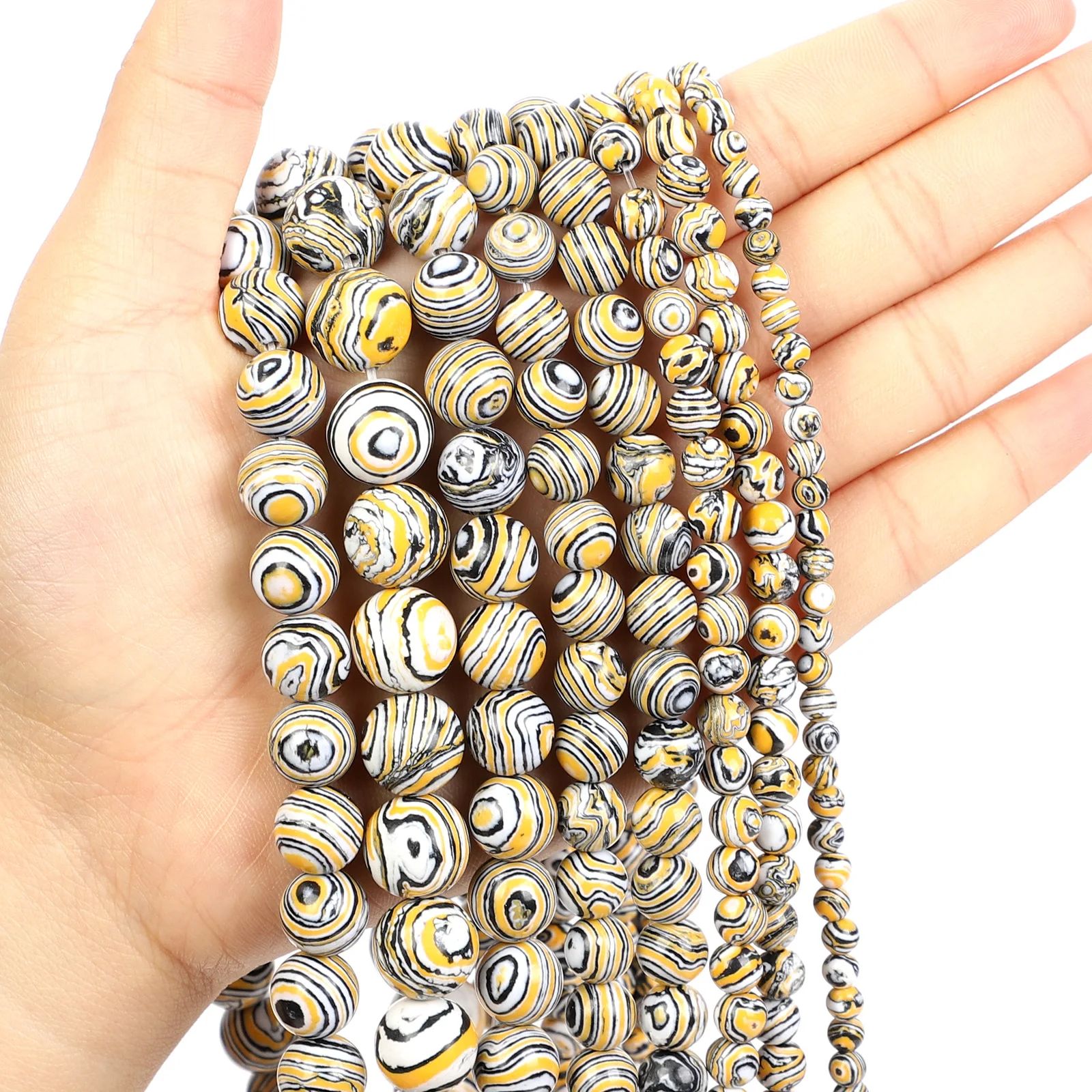 4681012 мм круглые бусы из натурального камня, для изготовления ювелирных изделий DIY 4 Цвета цветной краситель Малахитовый камень браслет из бисера ожерелье ручной работы