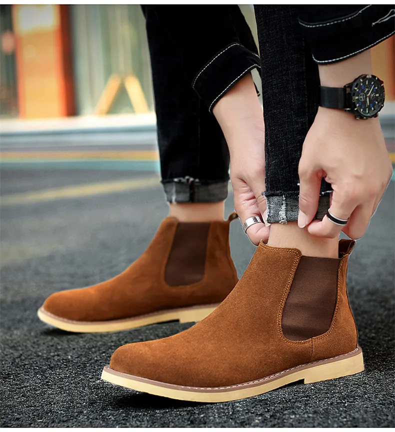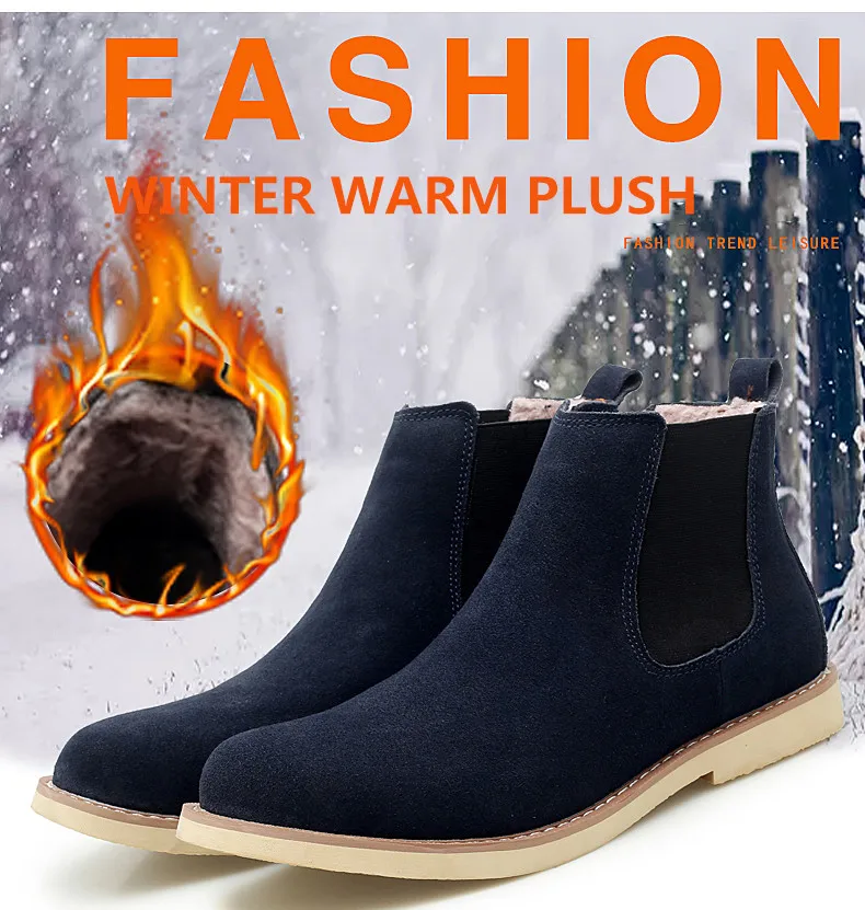 Новые зимние теплые плюшевые мужские ботинки высококачественные мужские ботинки челси из коровьей замши Нескользящие зимние ботинки ботильоны ручной работы большой размер 47