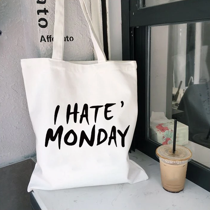 Женская Холщовая Сумка с надписью I Hat Monday, повседневная, Школьная, 2019