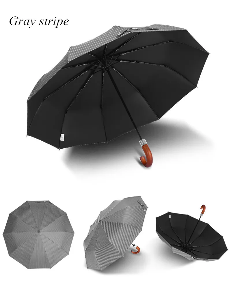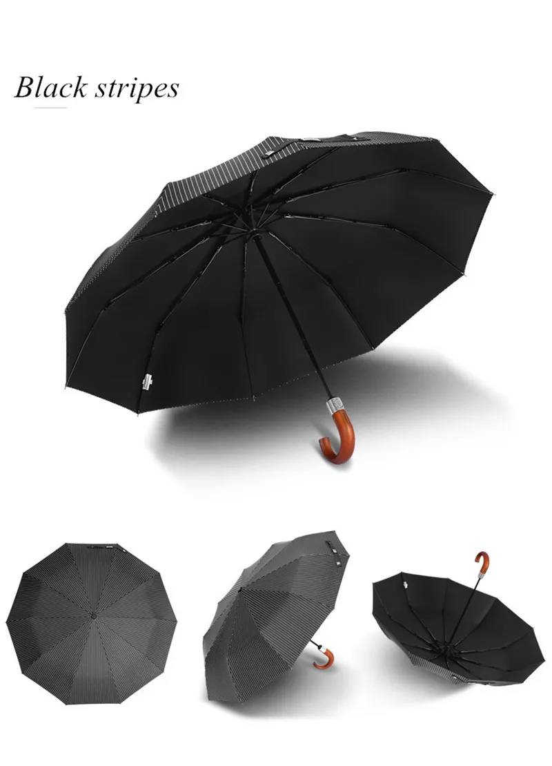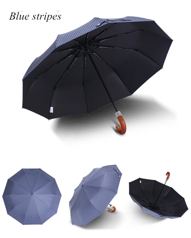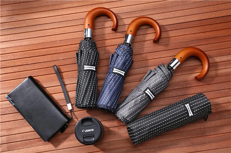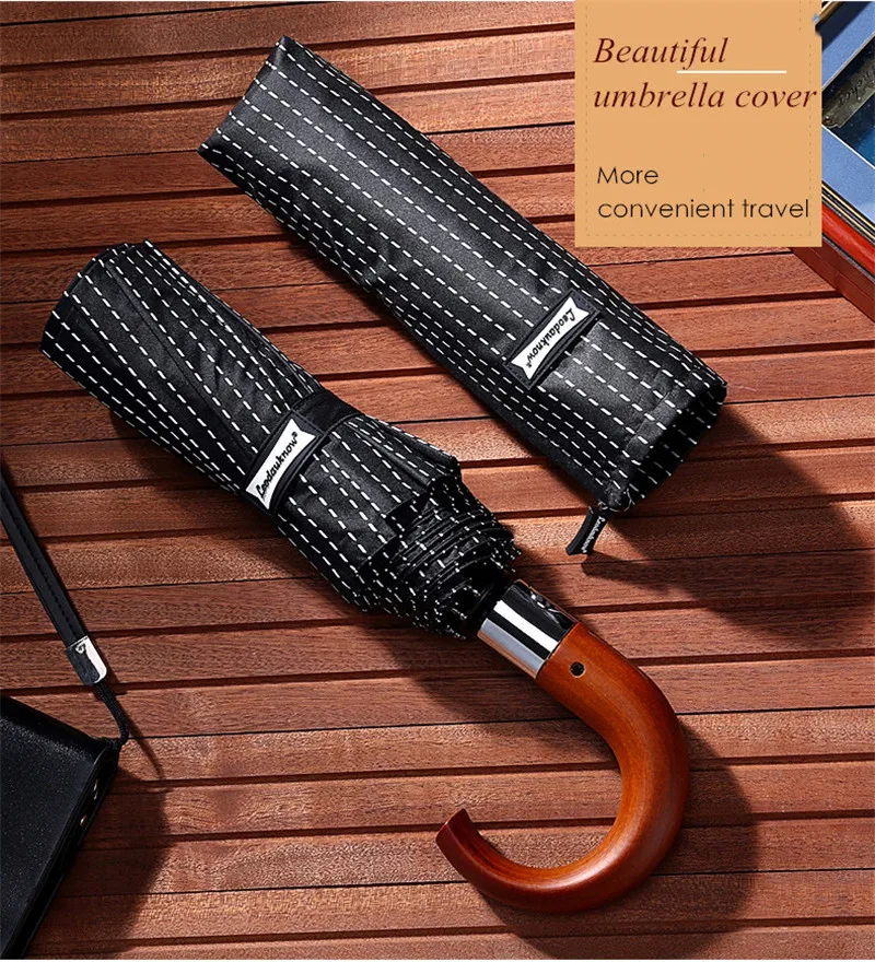 Автоматический зонт Leodauknow, складывается в три раза, с изогнутой ручкой, защищает от ветра и дождя, в деловом стиле
