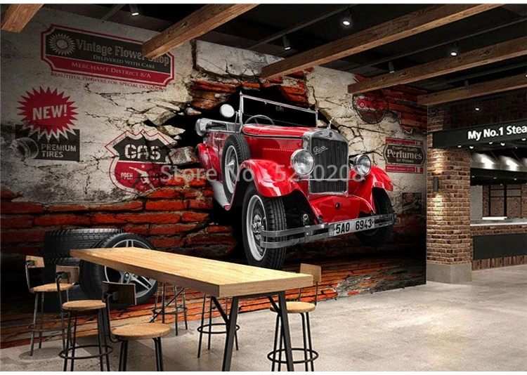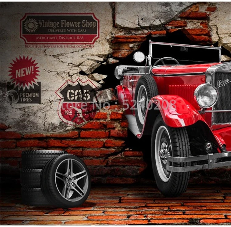 Пользовательские фотообои в стиле ретро красные автомобили сломанные стены фрески Ресторан кафе бар фон Настенный декор 3D водонепроницаемые утолщенные наклейки