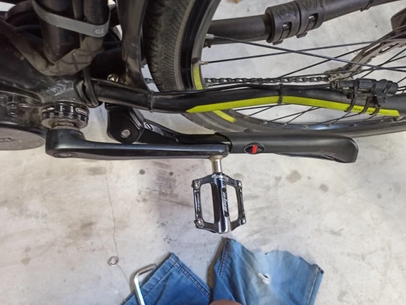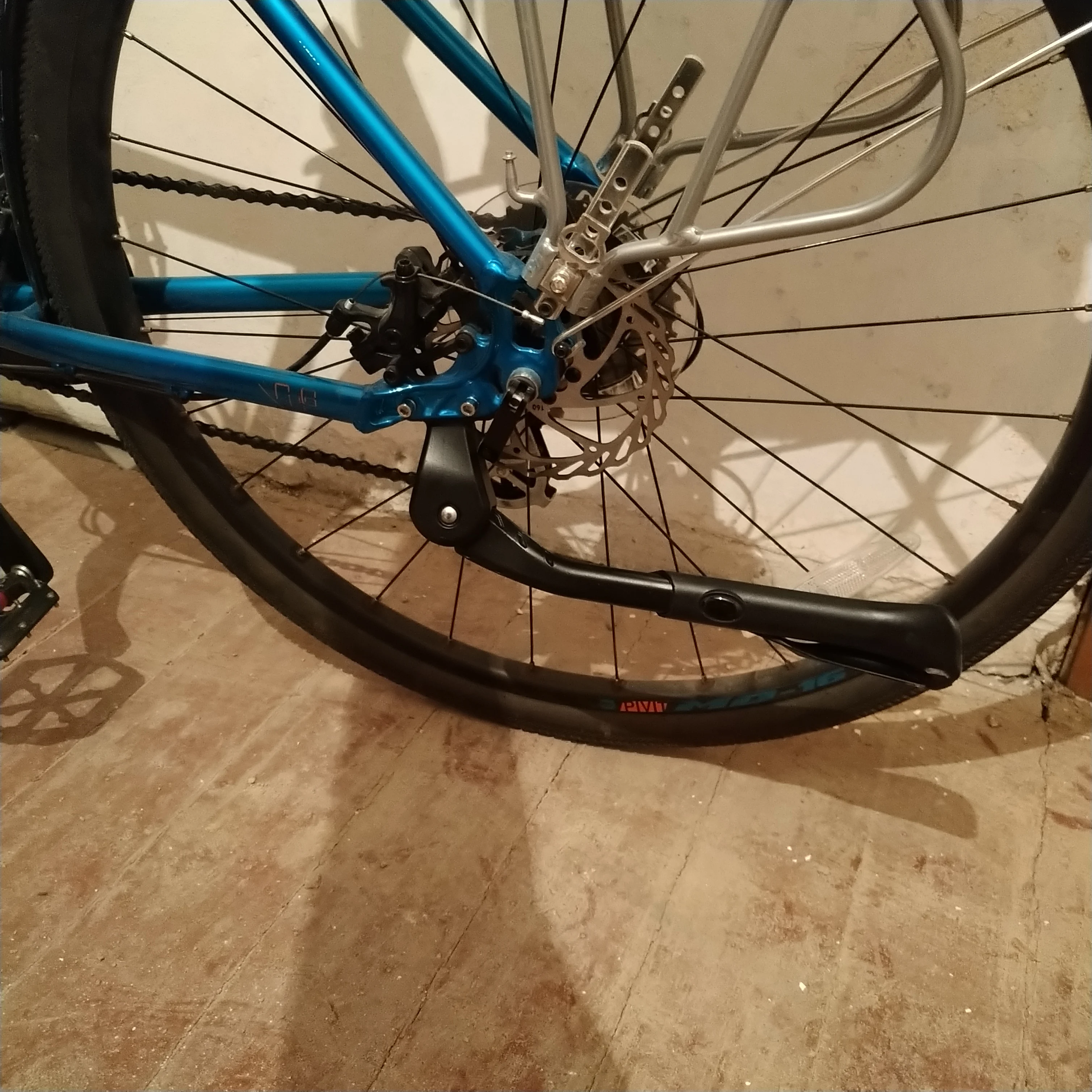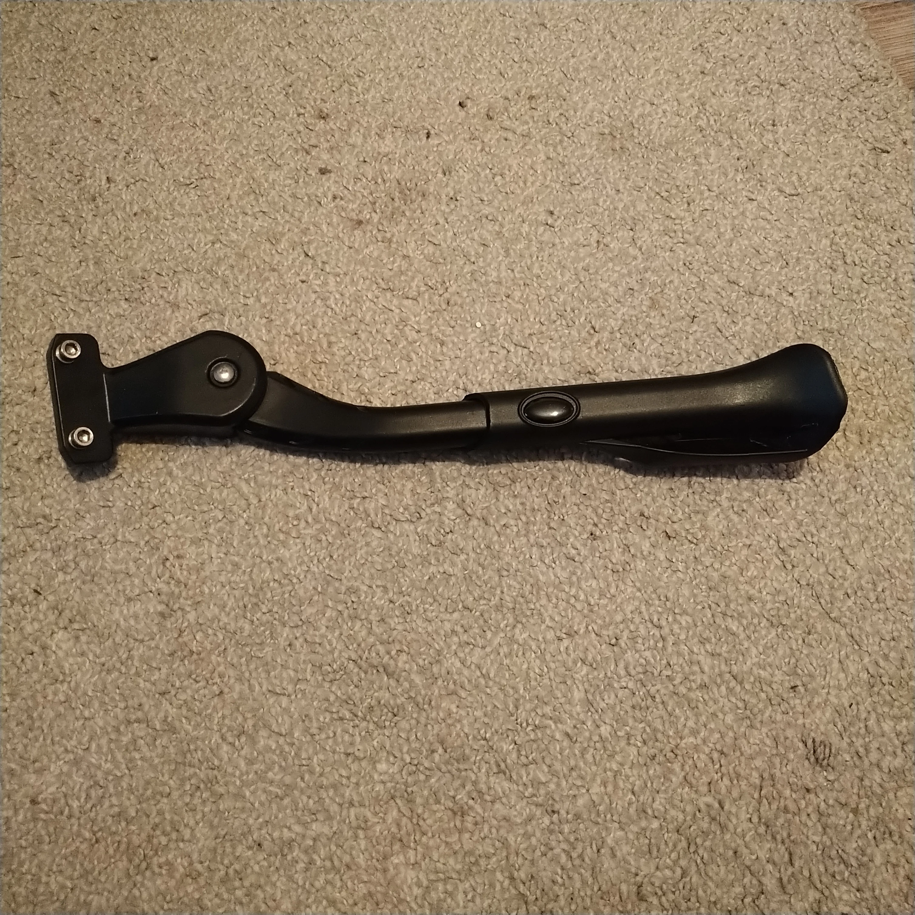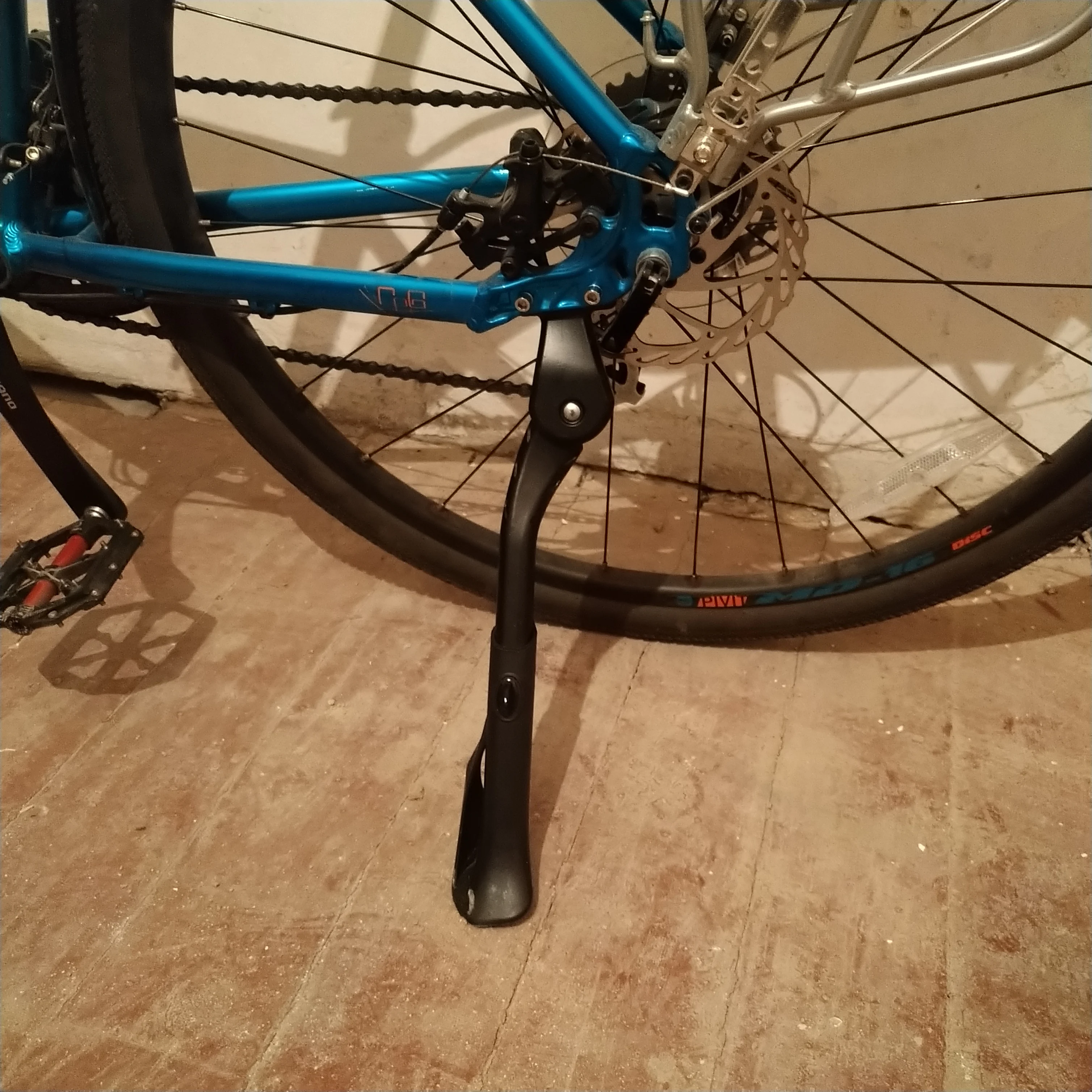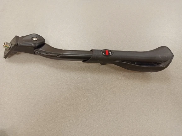 Нога довольно тяжелая. Специально, чтобы было полегче, брал алюминиевую, взамен сломавшейся стальной, а она оказалась массивнее :) Но функцию выполняет. Велик держит, после регулировки - почти вертикально. В поднятом состоянии не дребезжит.