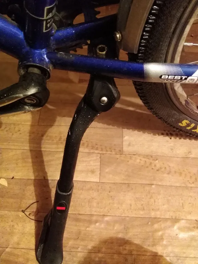 Классная подножка. Очень крепкая, хоть мотоцикл подпирай. В сложенном положении при езде не торчит никуда, а ровно вдоль колеса распологается. В штантые отверстия для подножки на пере моего велосипеда Haro Bridgeport встало идеально. Очень доволен покупкой. Продавец надёжный, рекомендую.
