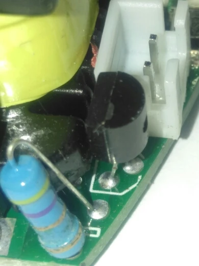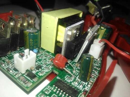В общем не стал я ругаться с продавцом, хотя продавец пообещал беспроблемный товар , но в начале утверждал, что не бракованного нет. А взял его чисто на посмотреть, уж больно разные отзывы, решил разобраться что и как. Увидел на выходе весьма любопытную картинку, поэтому решил разобрать. Был удивлён, что собран по классической схеме, причём на 2x KA7500, ORF830 и 55N08. А проблемы вызваны криворукими сборщиками и тупоголовыми разработчиками, решившими сделать механическую защиту гнезд розетки. В итоге плата упирается в защиту и теряет диод и резистор , последнее фото .Кто будет спорить и выбрасывает товар, может его легко пофиксить, товар по сути не плохой и своих денег стоит.