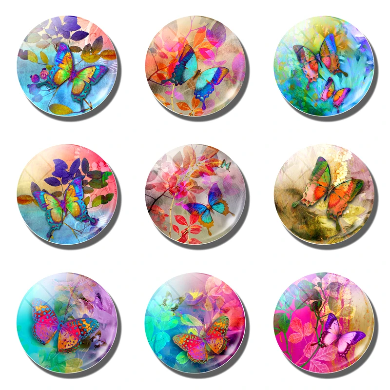 Магнит-бабочка на холодильник 1 шт. 30 мм стеклянный кабошон, животное, магниты на холодильник, цветы, крылья бабочки, наклейки на холодильник, домашний декор