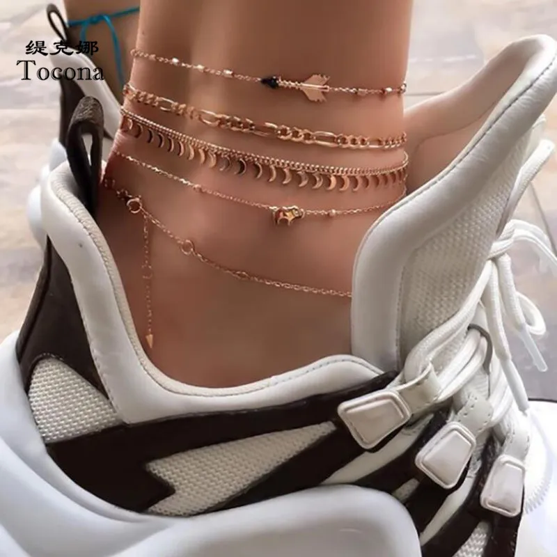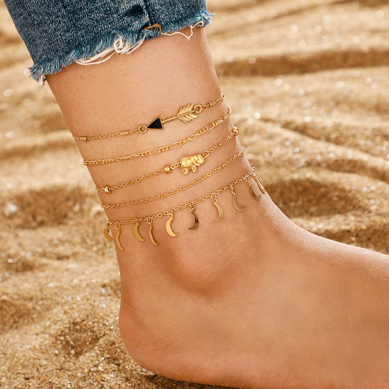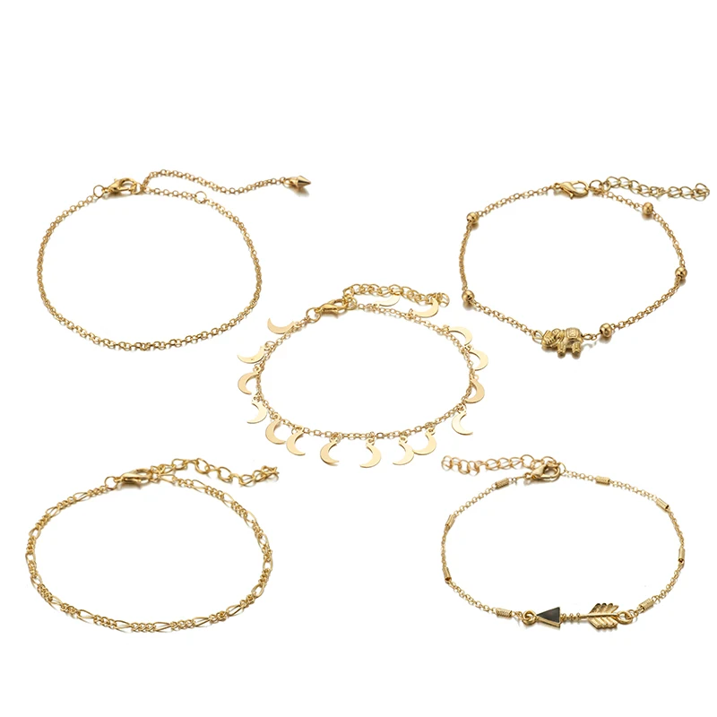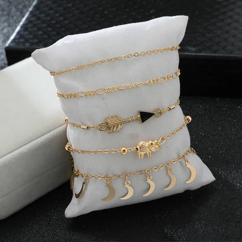 Tocona Подвески 5 шт.компл. цепочка для ног Луна слон стрела браслеты для ног без ног модные ювелирные изделия женские аксессуары 8634