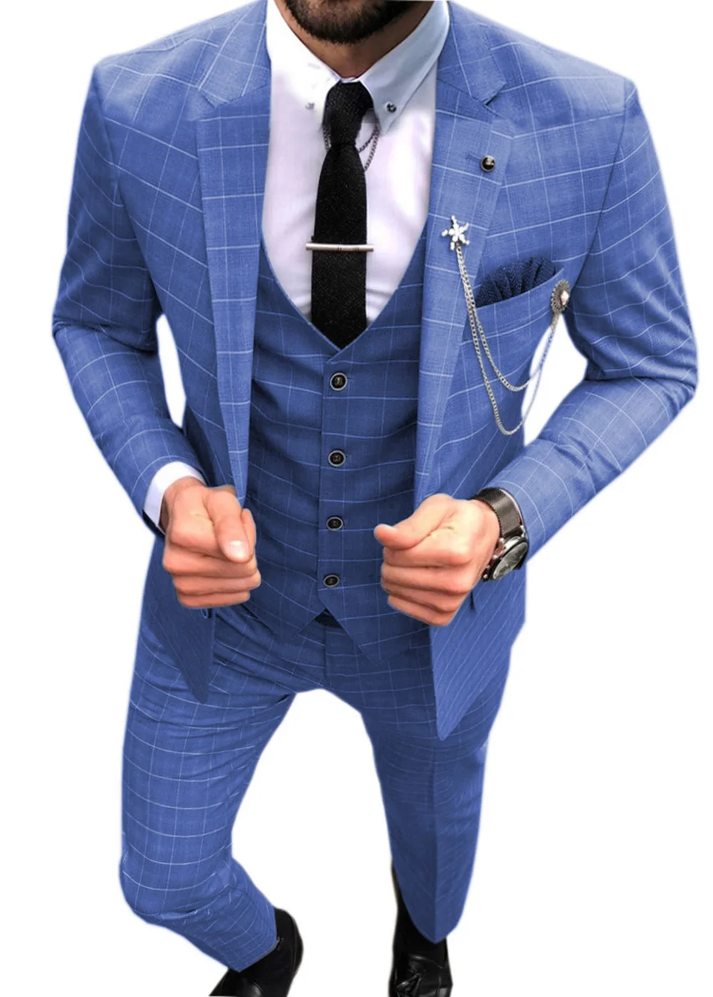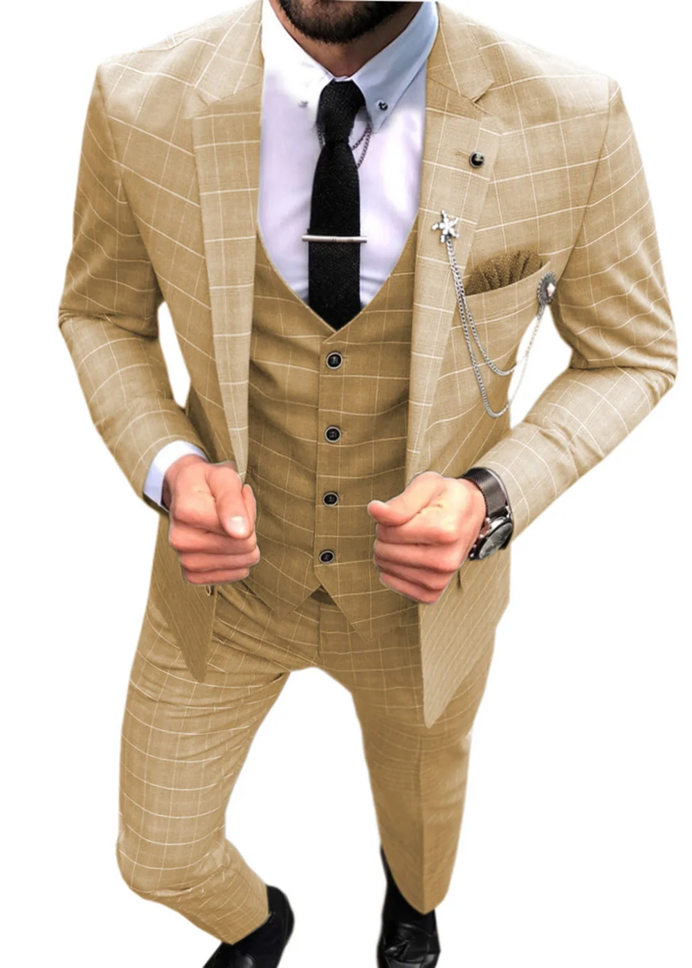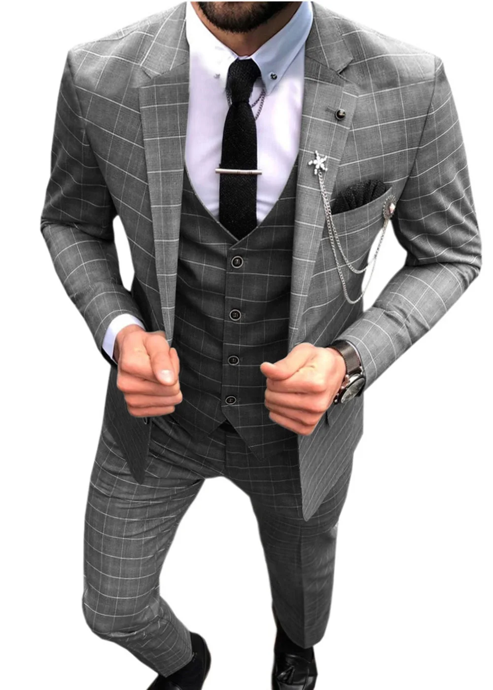 Мужской костюм из трех предметов, клетчатые деловые смокинги с отложным воротником и V-образным вырезом, мужские свадебные костюмы для женихов, мужские костюмы 2022 (Блейзер, жилет и брюки)