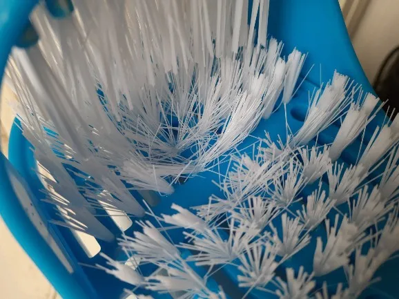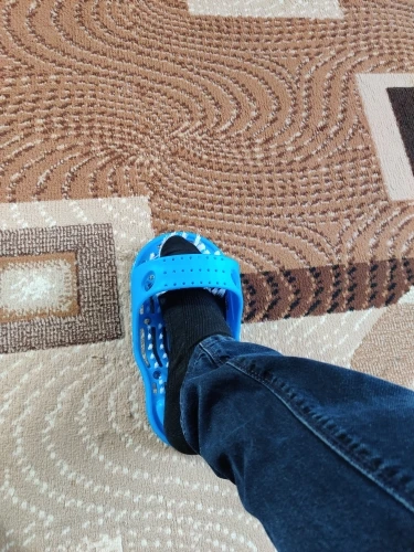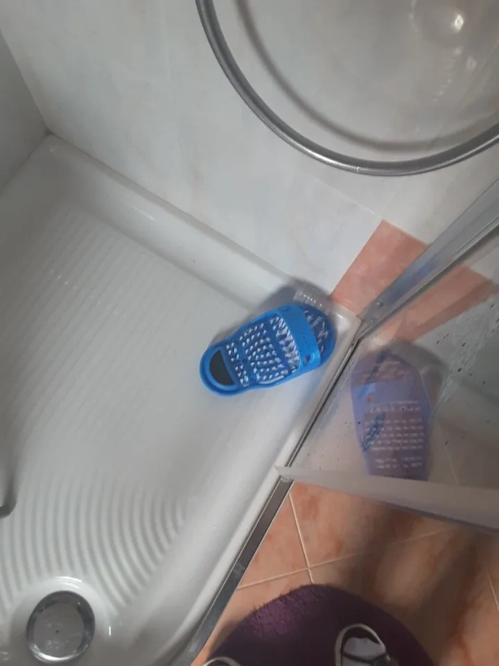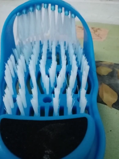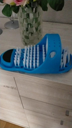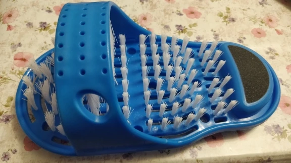 Одно из лучших приобретений!!!! Чудесный тапок-щётка-мочалка-массажёр. Липучки плотно приклеивают тапочек ко дну ванны или поддона. Щетинка длинная, достаточно жёсткая, хорошо массирует и моет. Очень довольна, рекомендую!!! Доставка почти два месяца.